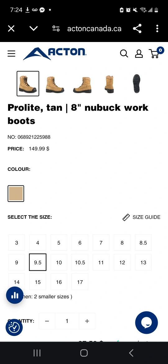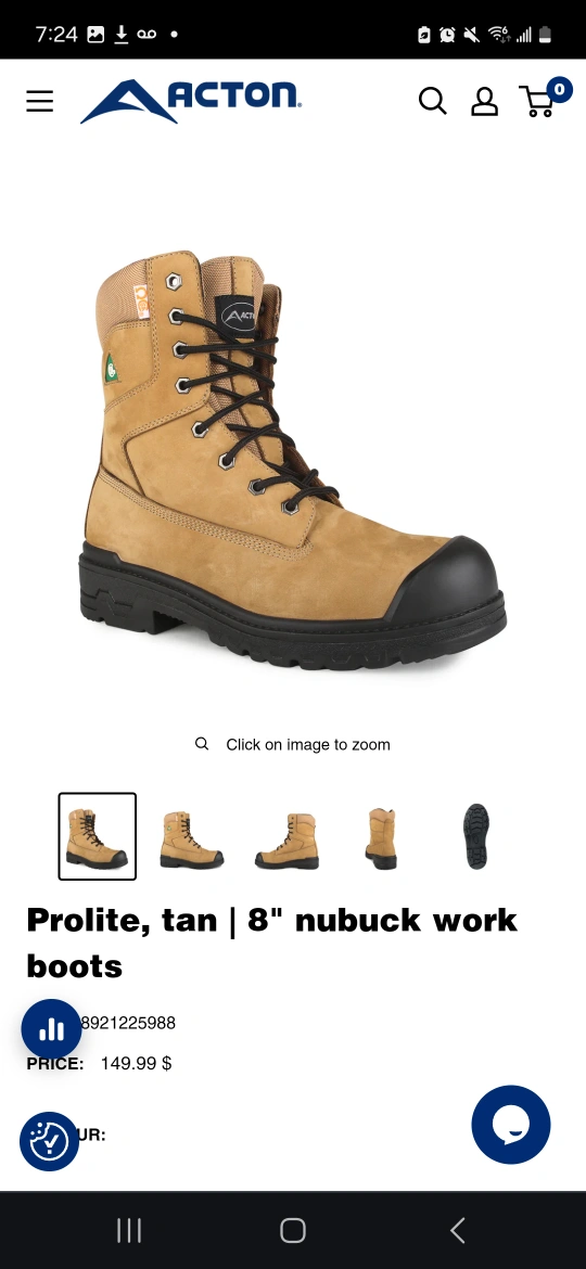 ACTON Prolite 8" Nubuck Tan Work Boots (Size 9.5, brand new)