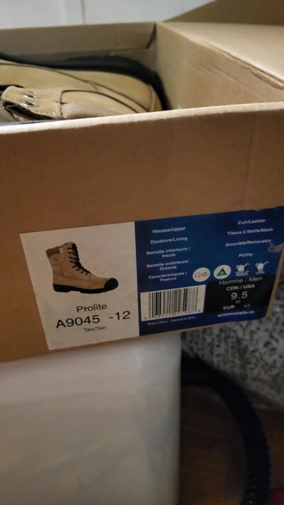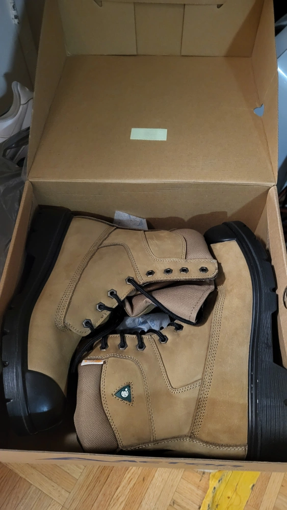 Men's 8" tan nubuck work boots. Size 9.5. New in box.