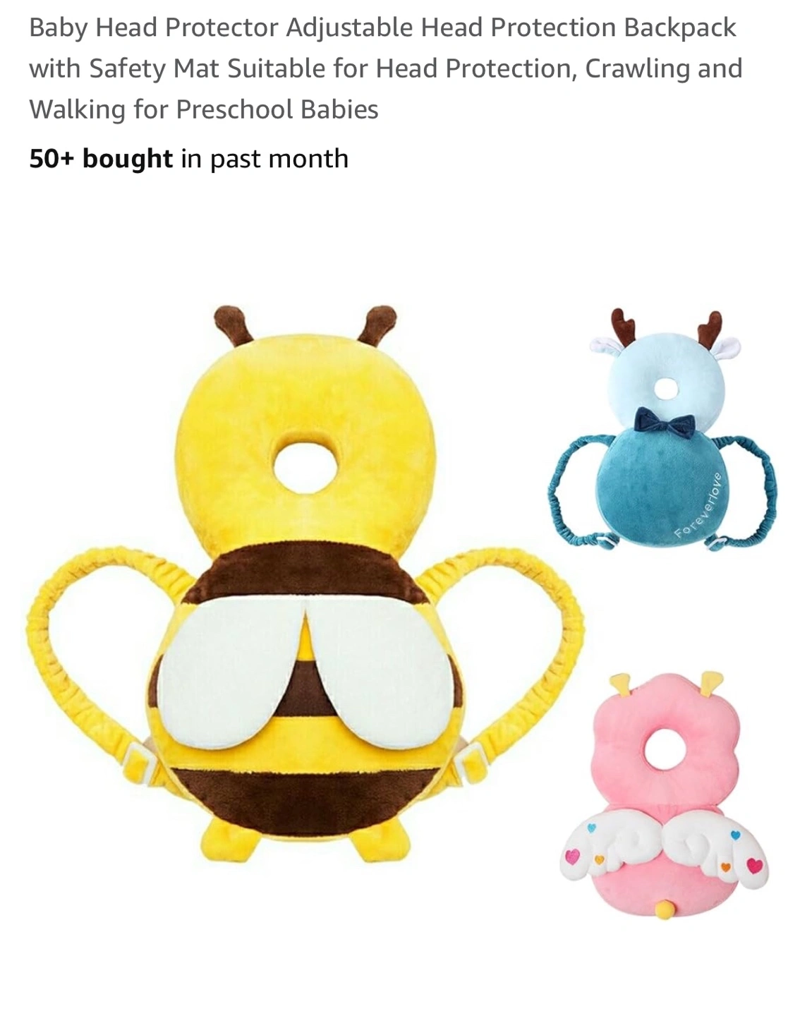 Adjustable head protection backpack with safety mat. Suitable for head protection, crawling and walking. For preschool babies. Cute animal designs.