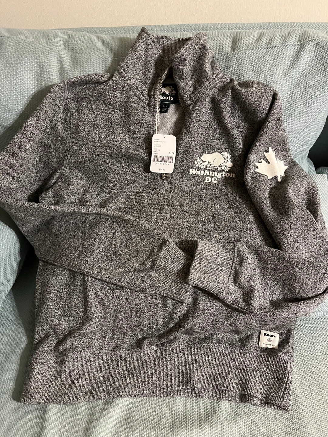 Buy & SellRoots Washington DC 1/2 Zip SweatshirtRoots Washington DC 1/2 Zip Sweatshirt$25Grey heather quarter-zip pullover sweatshirt. Features Washington DC logo and Roots branding. Size small.ConditionNewSizeSBrandRootsWHERE TO MEETSteeles & BathurstView MapSELLERverifiedLeilaBathurst Manor1469 reviews0 chats·1 favorites·69 viewsSEND CHAT TO SELLERHi Leila! I’m interested in your listing.Hi Leila! I’m interested in your listing.Get the Karrot app to chatSign In to chat