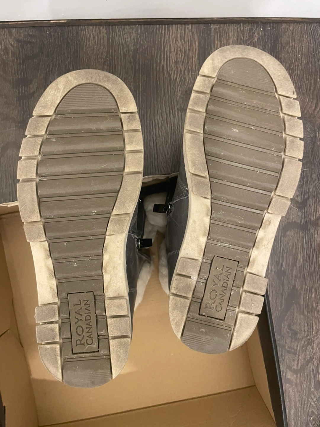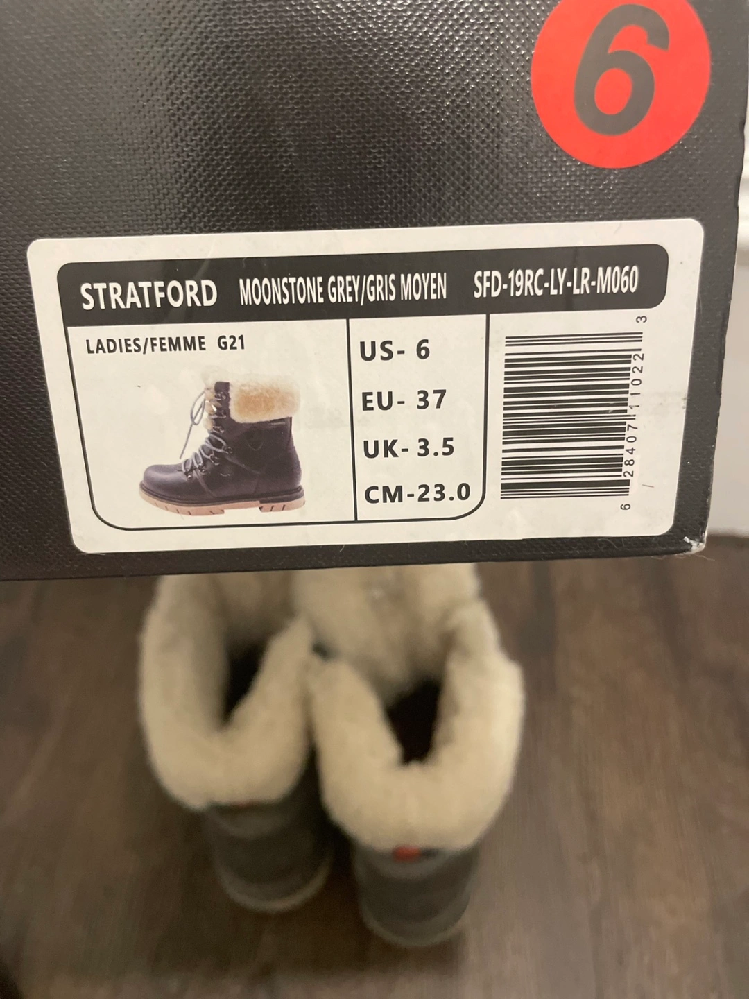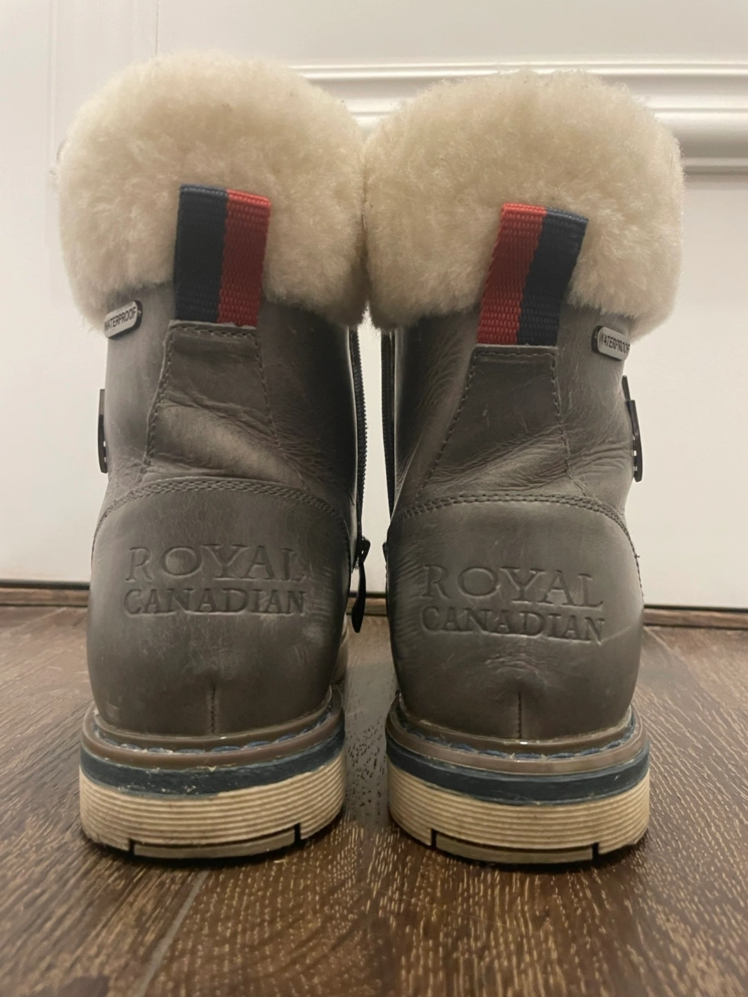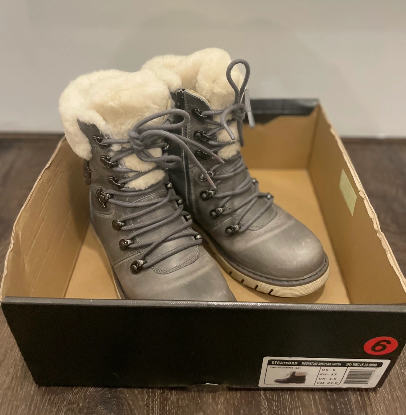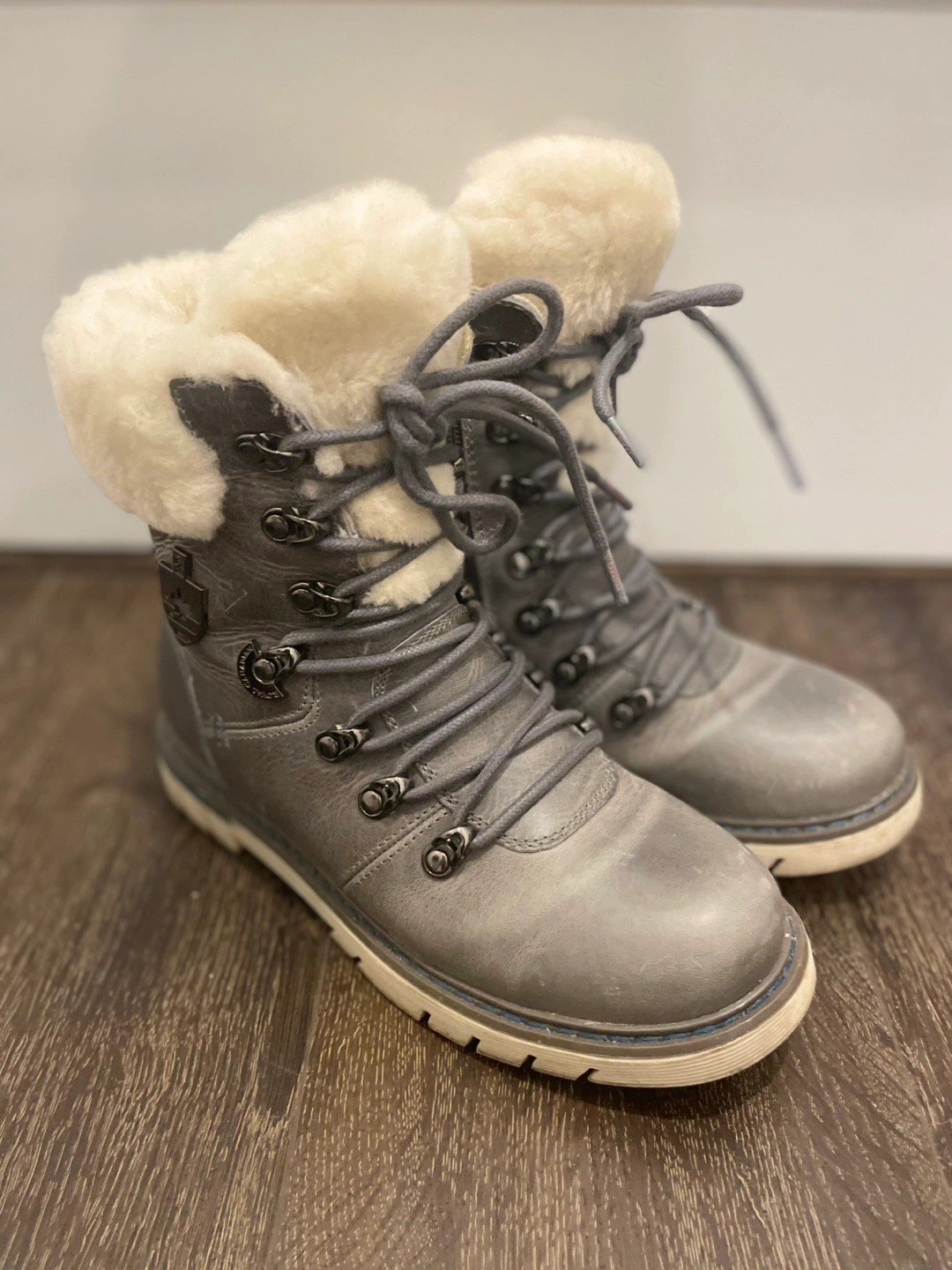 Women Grey leather winter boots. Lace-up Warm fur lining. Waterproof.