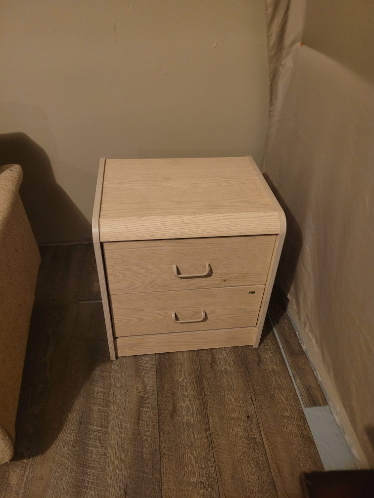 1 / 21 / 2Buy & SellWooden Two-Drawer NightstandWooden Two-Drawer Nightstand$5Light wood nightstand. Two drawers. Small size. Good for a bedroom or small space. $5.00 ConditionLike newWHERE TO MEETCheck LocationView MapSELLERNathyMiller15514 reviews4 chats·3 favorites·56 viewsSEND CHAT TO SELLERHi Nathy! I’m interested in your listing.Hi Nathy! I’m interested in your listing.Get the Karrot app to chatSign In to chat