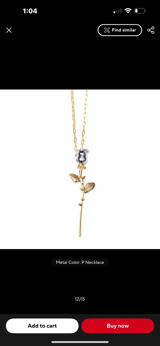 Delicate rose pendant necklace. Features gold chain and rose detailing. Two-toned metal rose charm.