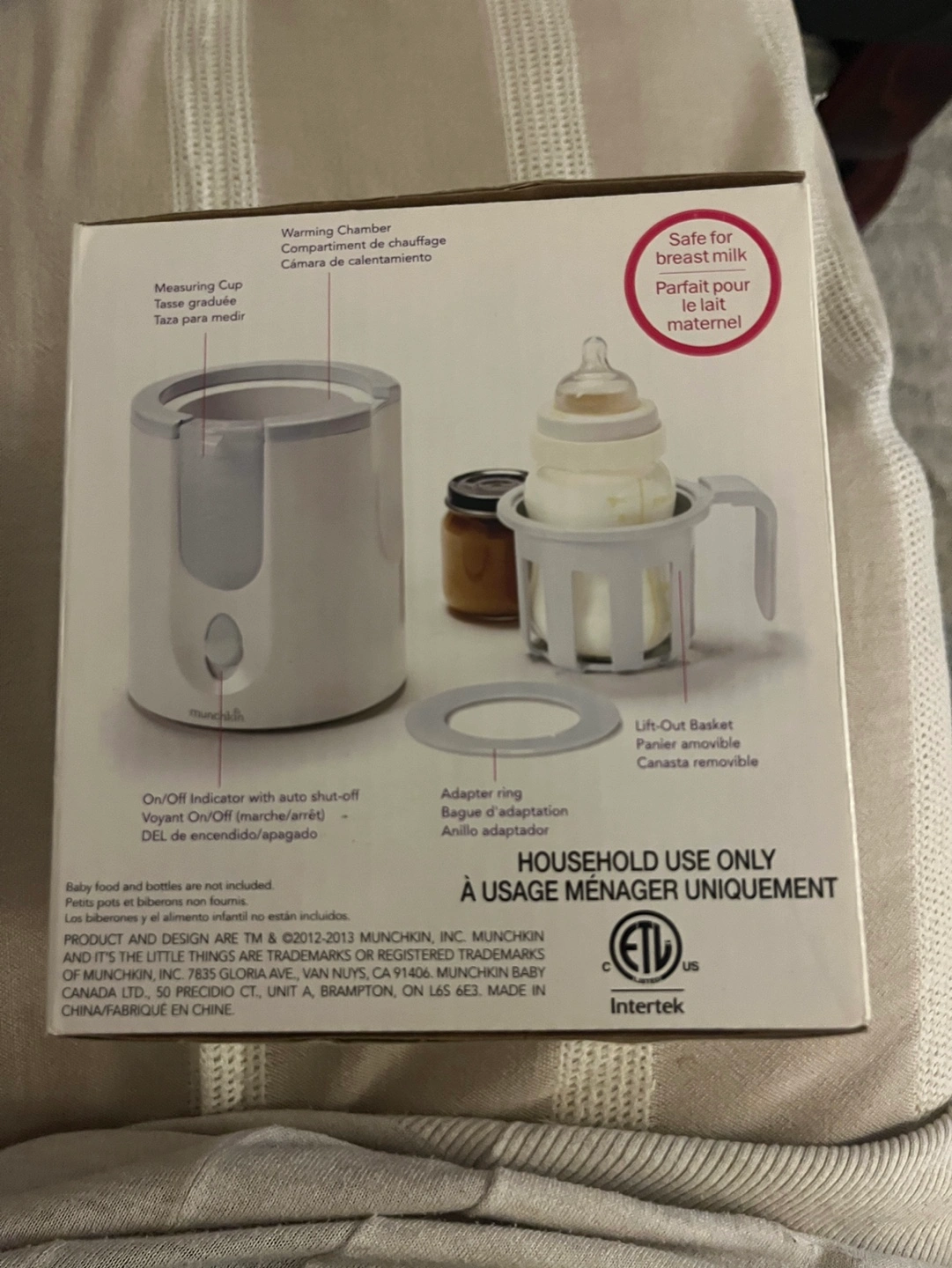 Quickly warms bottles and jars. Steam warming helps preserve nutrients. Safe for breast milk. Ready in 90 seconds. Household use only.