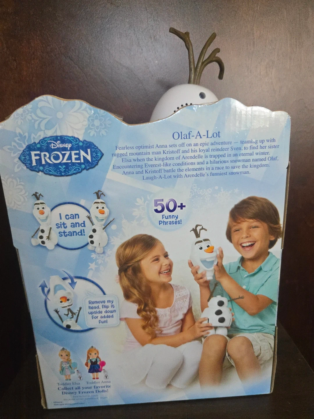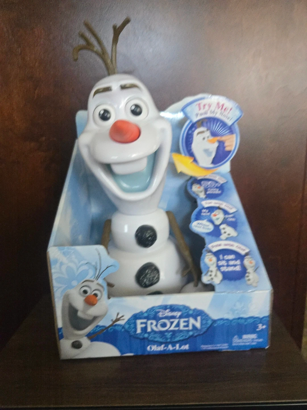 This Olaf-A-Lot doll from Disney's Frozen talks and can sit and stand! It includes over 50 funny phrases. He's ready for adventure!