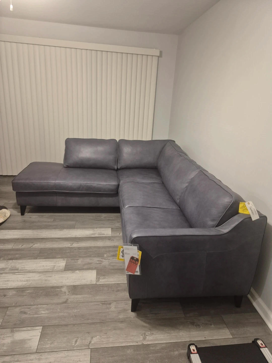 Right facing chaise,100% Italian Leather Sectional, dark wood legs. Perfect addition to your new apartment. This Sectional is New! Need to sell by 4-26-2026.