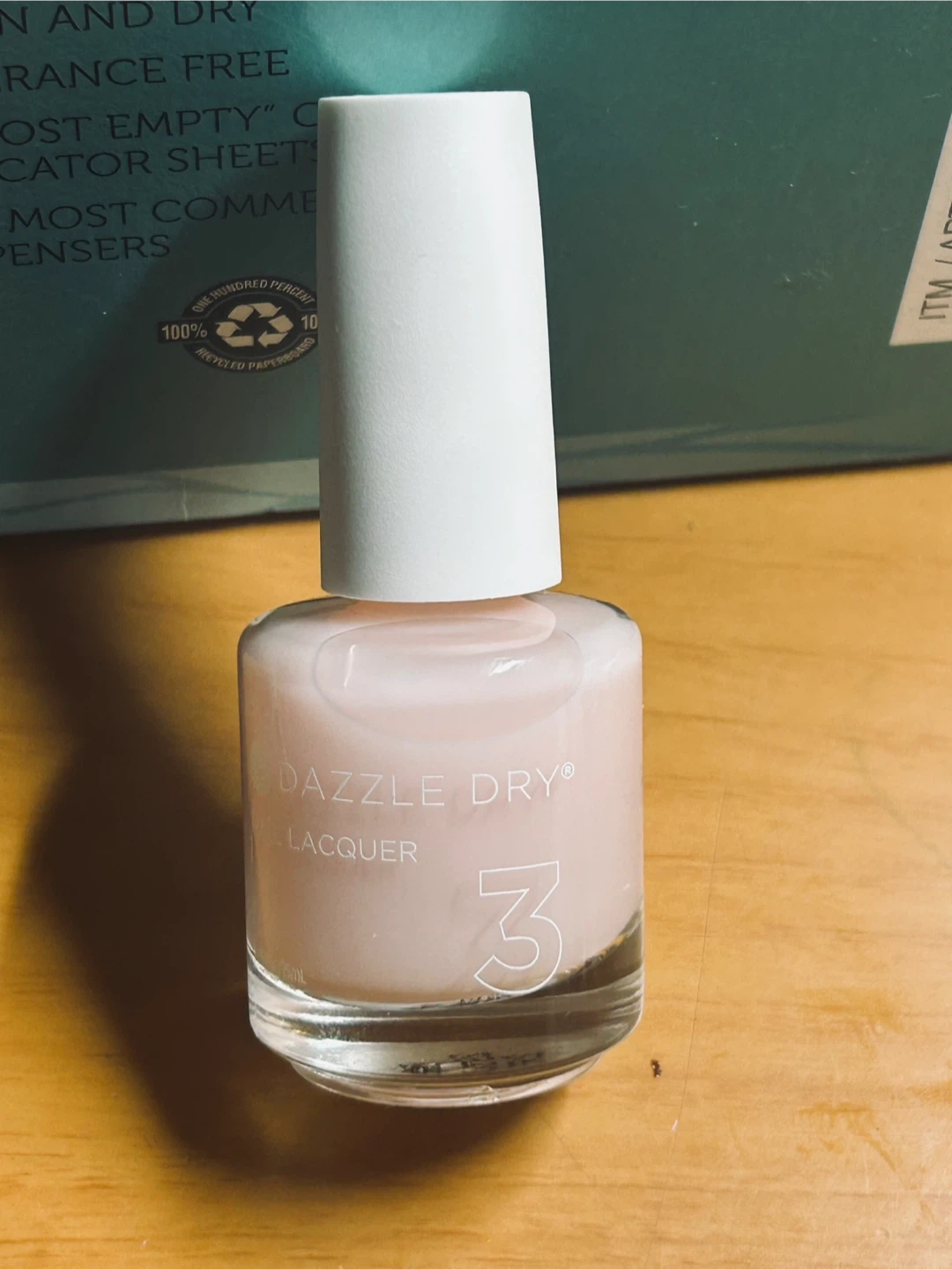 Dazzle Dry nail lacquer in the shade "Peacefully Me." This is a quick-drying, chip-resistant formula. It's a lovely pale pink color. This shade would be great for everyday wear!