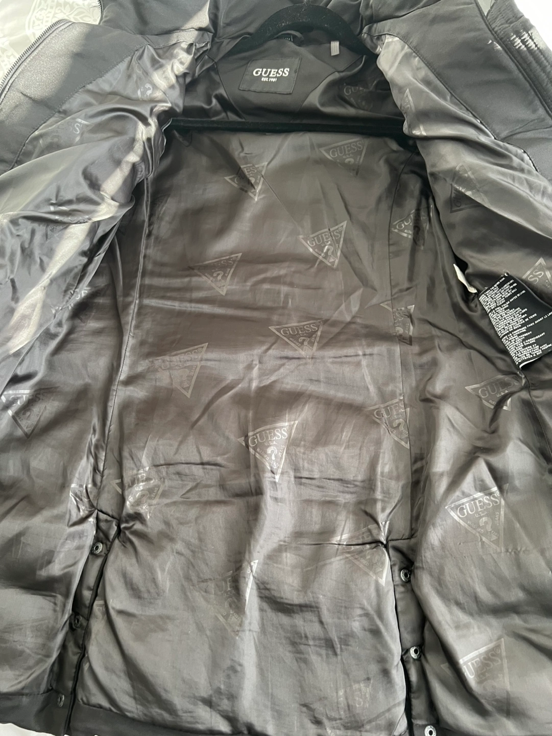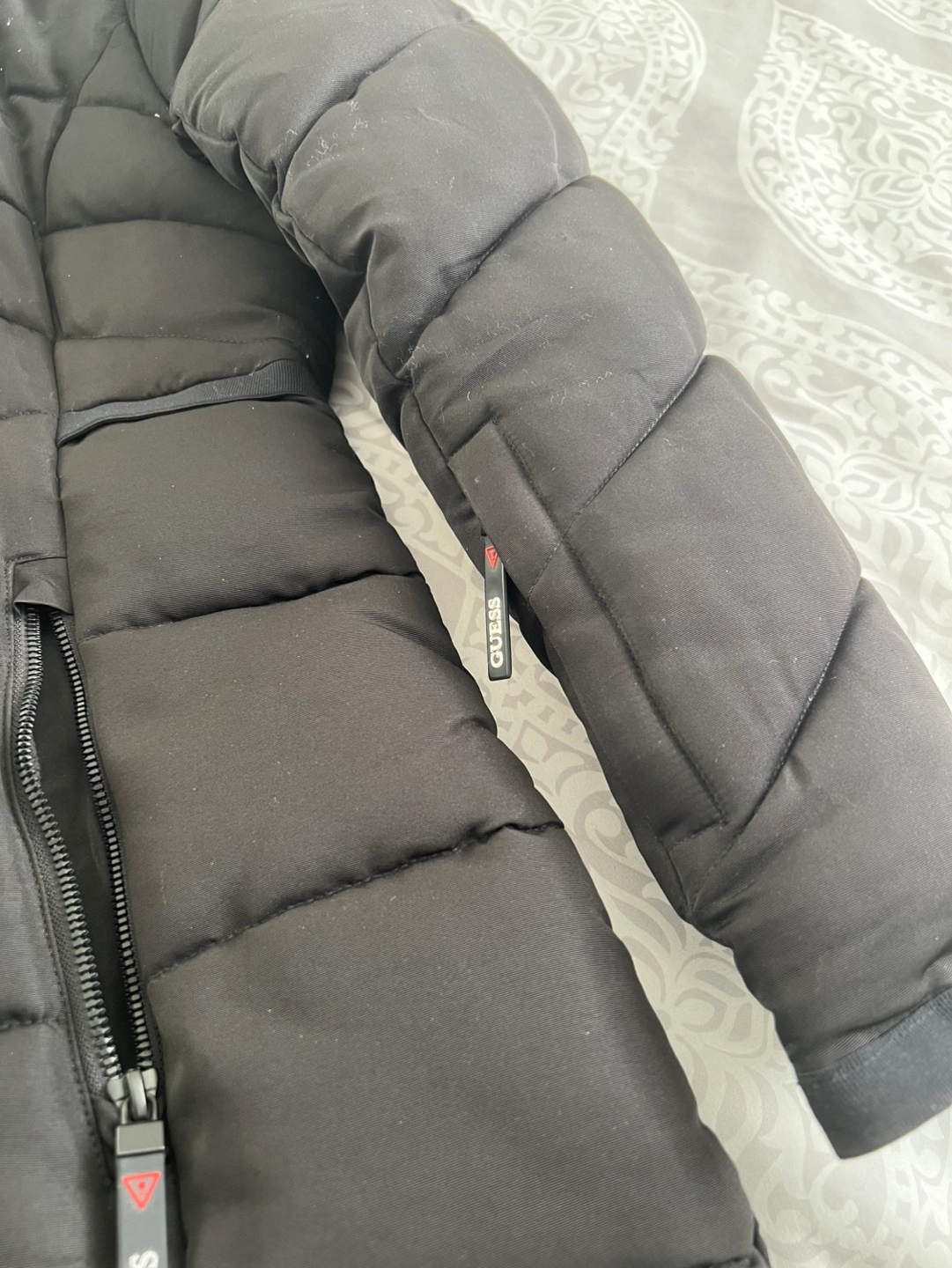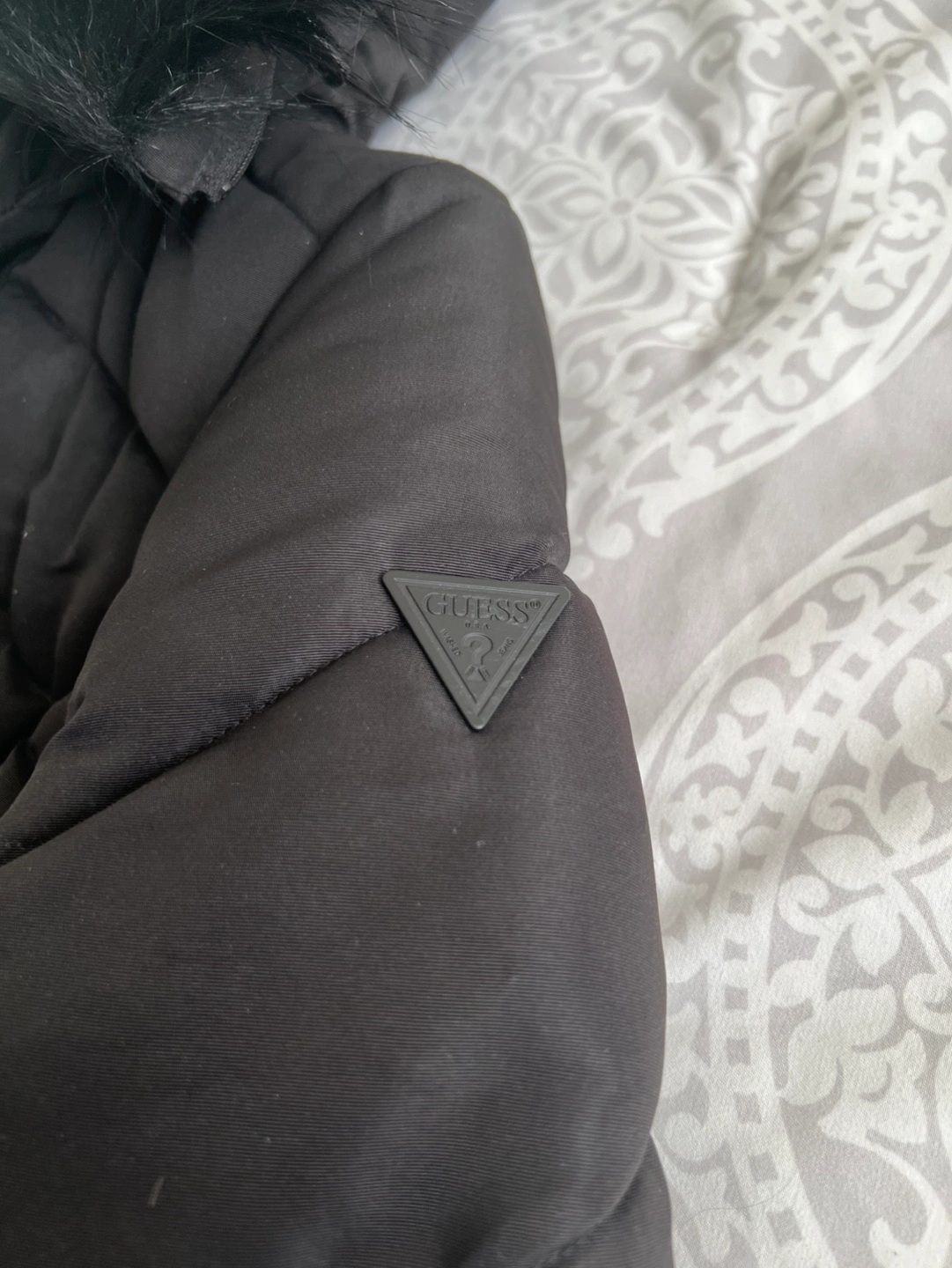New Guess Women's Black Puffer Jacket with Faux Fur Hood