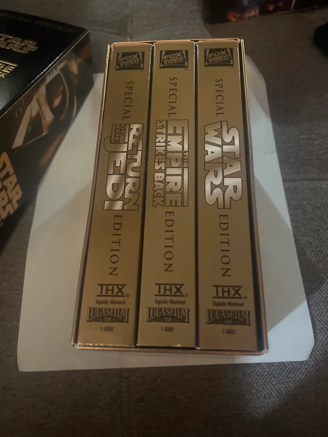 Special edition VHS tapes of the original Star Wars trilogy. Digitally mastered for superior sound and picture quality. Includes all three movies in their original box. Great for collectors!