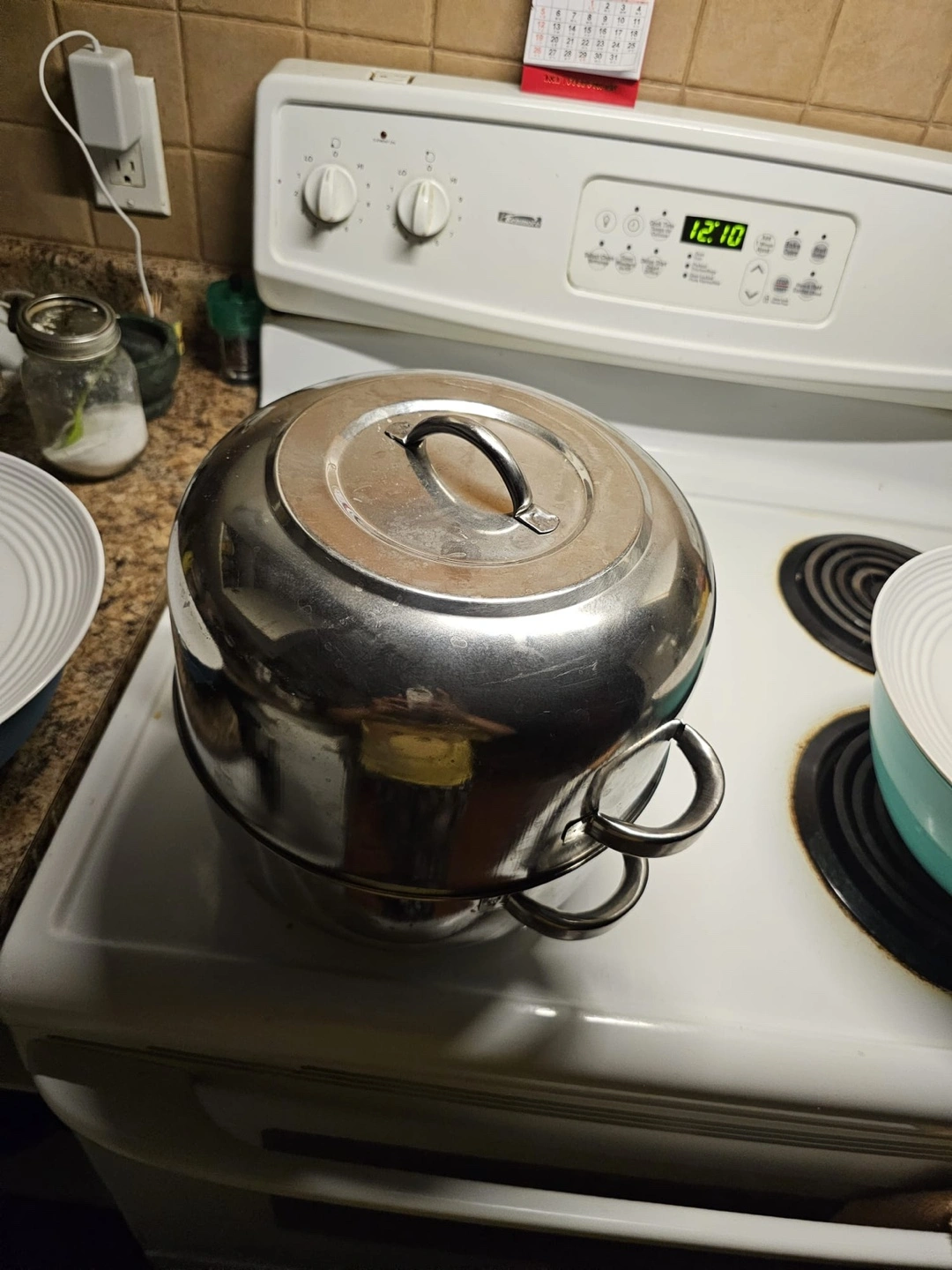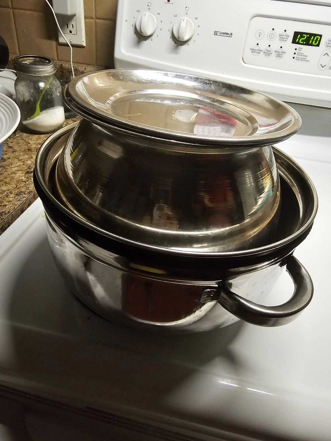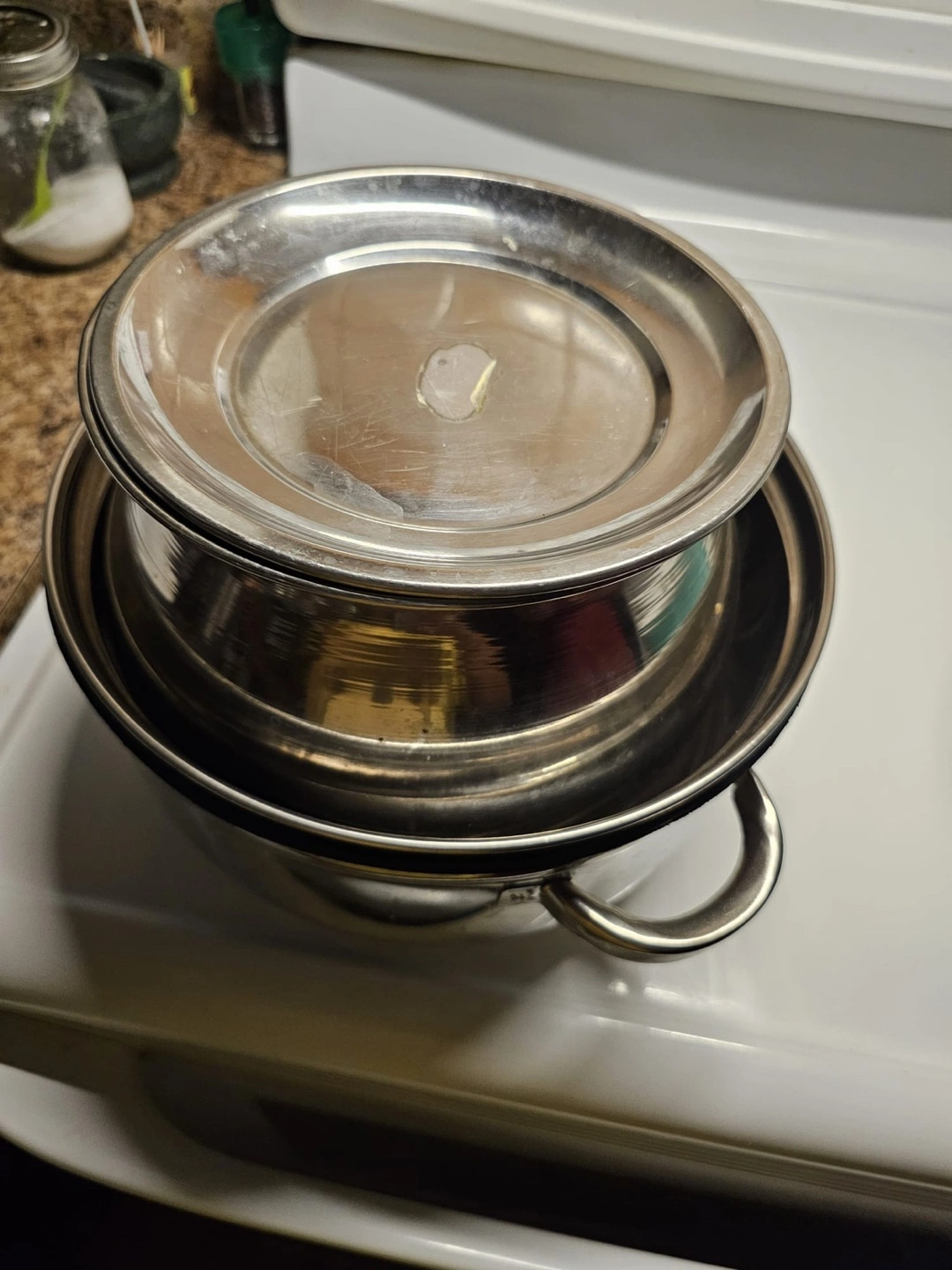 Two-tiered stainless steel steamer. Great steaming rice .Features two removable pieces. Used but in good condition.
