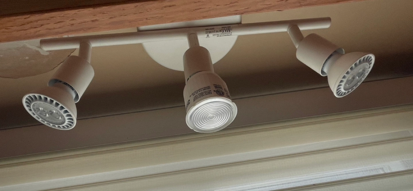 New in box IKEA TROSS three-light track lighting kit. White finish. Includes all mounting hardware. Modern design. Perfect for kitchen or living room.