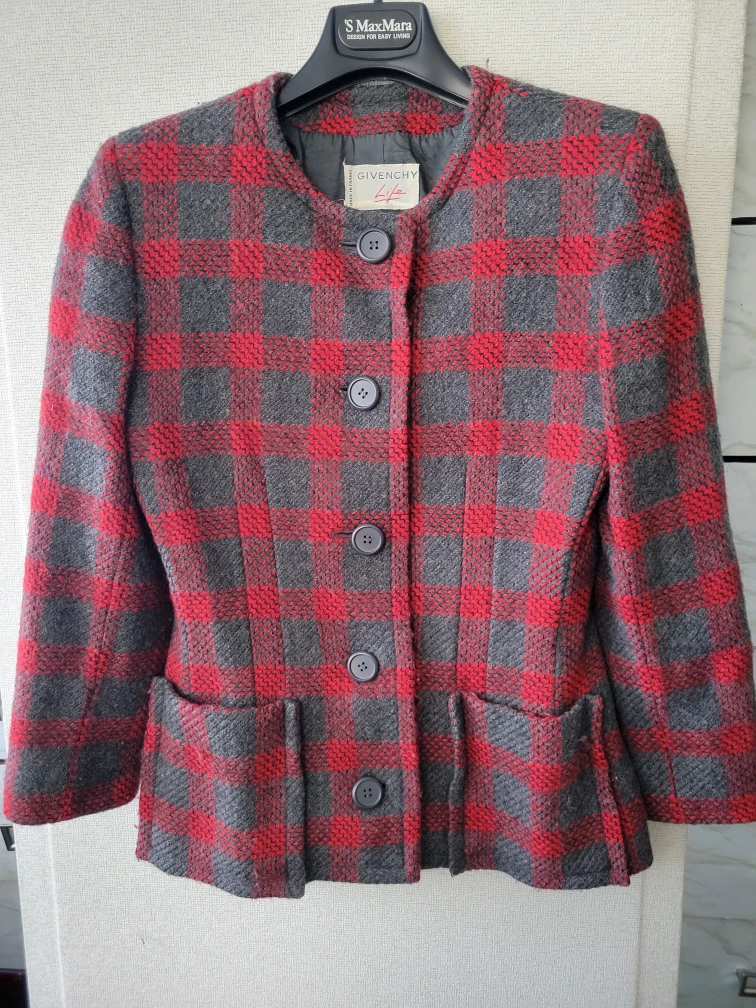 Vintage Givenchy Life Red and Grey Plaid Jacket