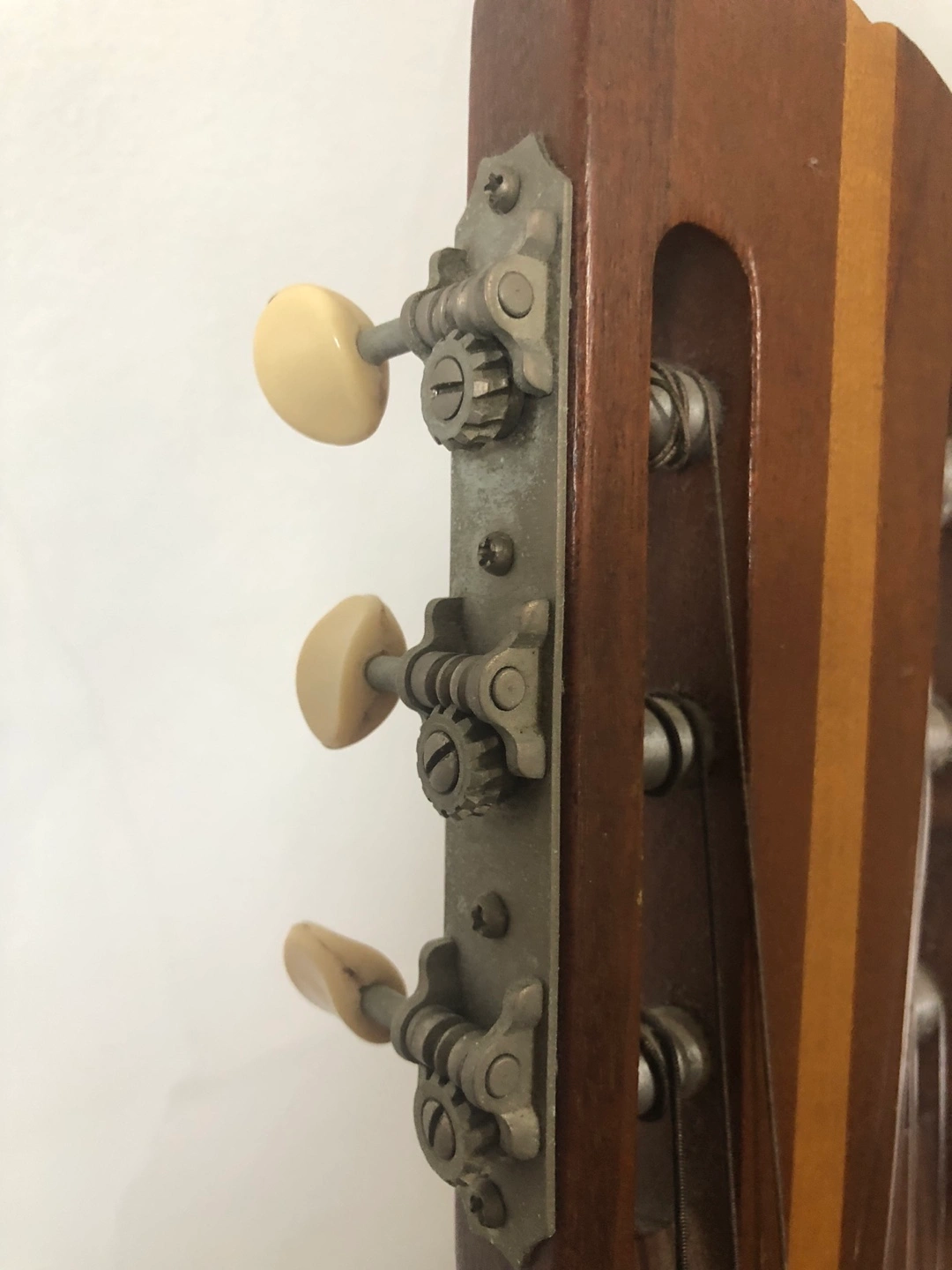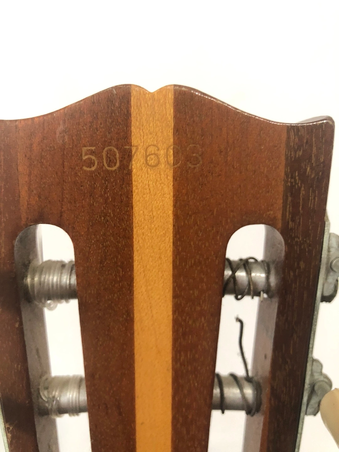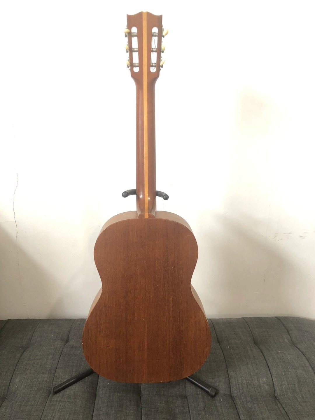 Classic guitar, wooden body and neck. Union made. Serial number 507603. Kalamazoo, Michigan. Plays fantastic. Slight bends in 2 tuning pegs. Been like that for years. Small crack on back and side. Comes with soft gig bag.