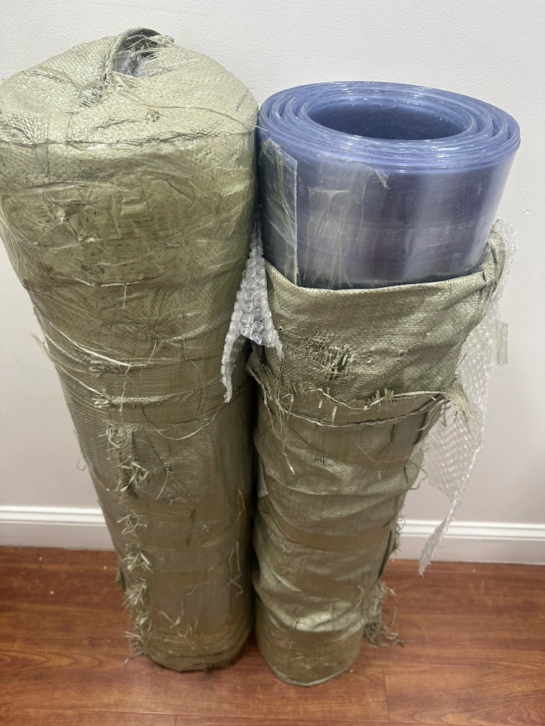 Clear transparent plastic sheeting. Easy to cut. Great for outdoor gardening, greenhouse, or balcony wind protecting & privacy. 2 brand new rolls these go for $149 a piece on Amazon.