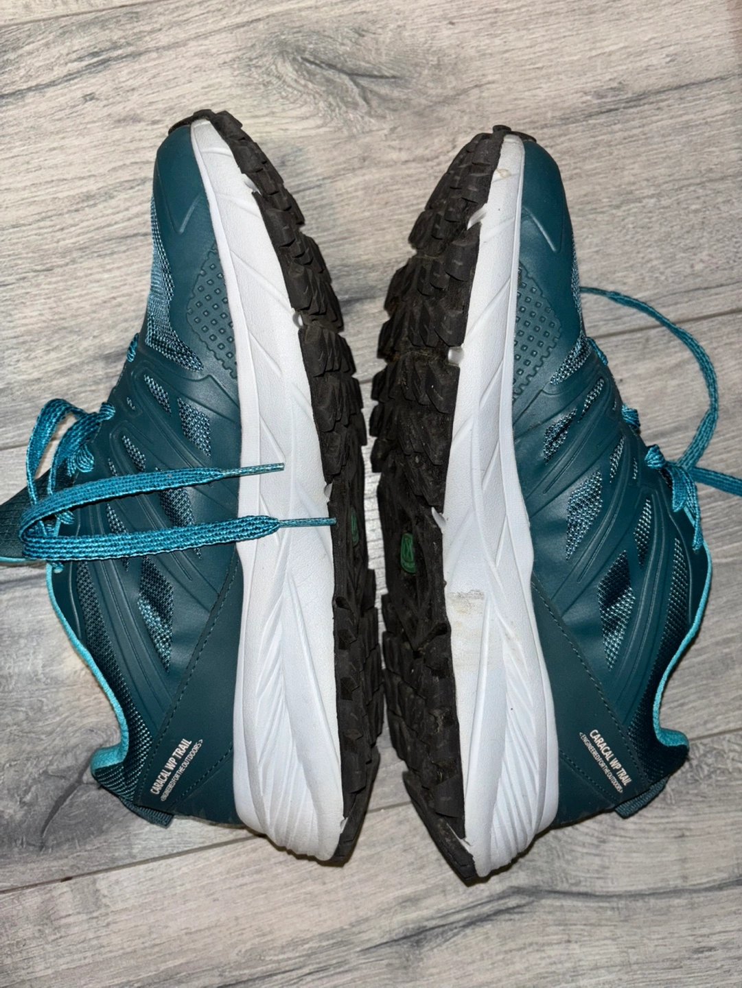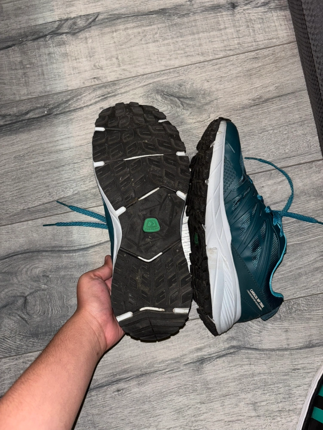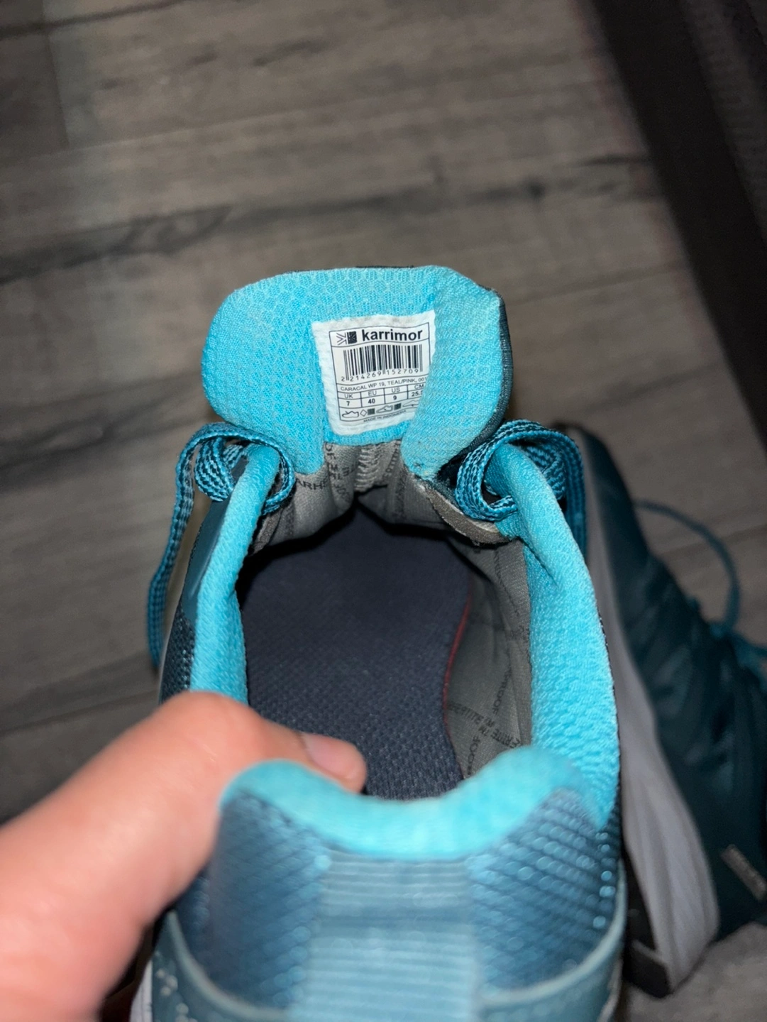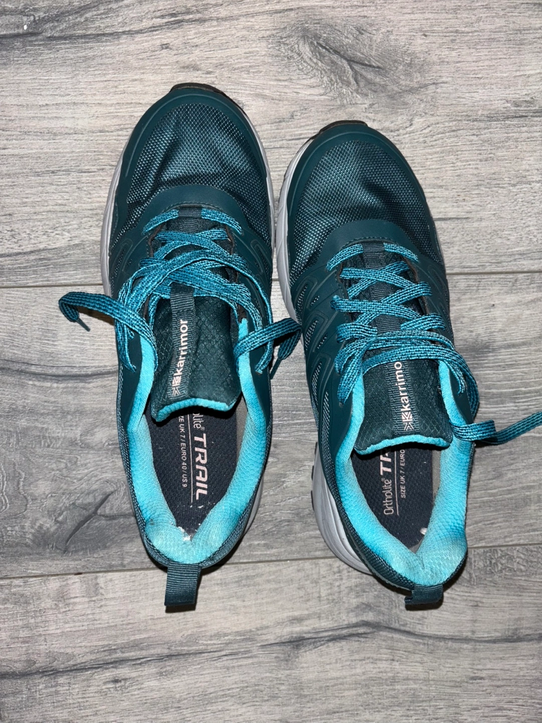Pre-owned Karrimor Grivola Trail running shoes. Teal blue colour. Women's size UK 8. Very Good condition, almost unused.