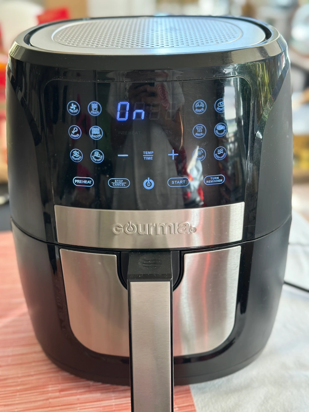 Digital air fryer. Features multiple cooking settings and a digital display. Great for cooking various foods.