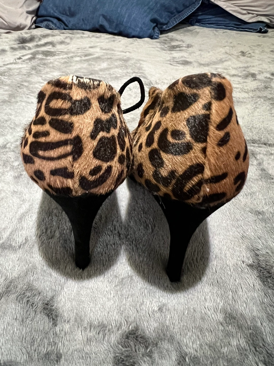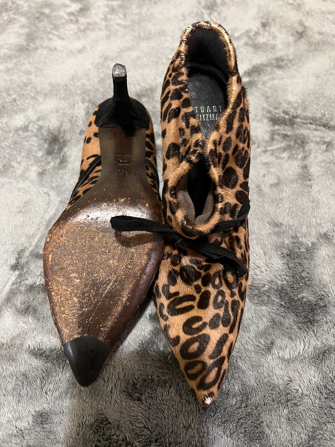 Leopard Aok Serval hair Print Heel Calf Booties βπβ