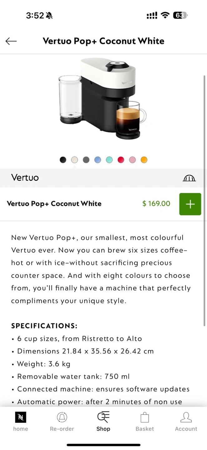 Nespresso Vertuo Pop Coffee Machine - Coconut White