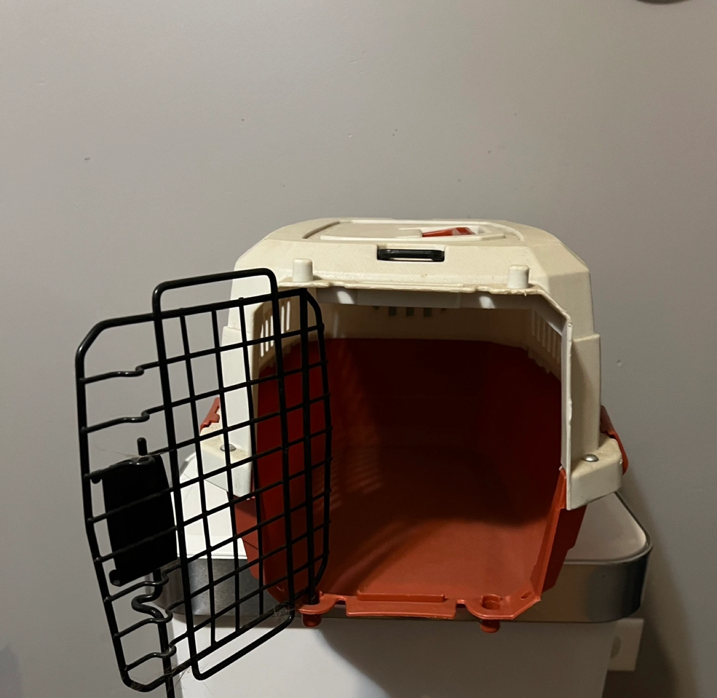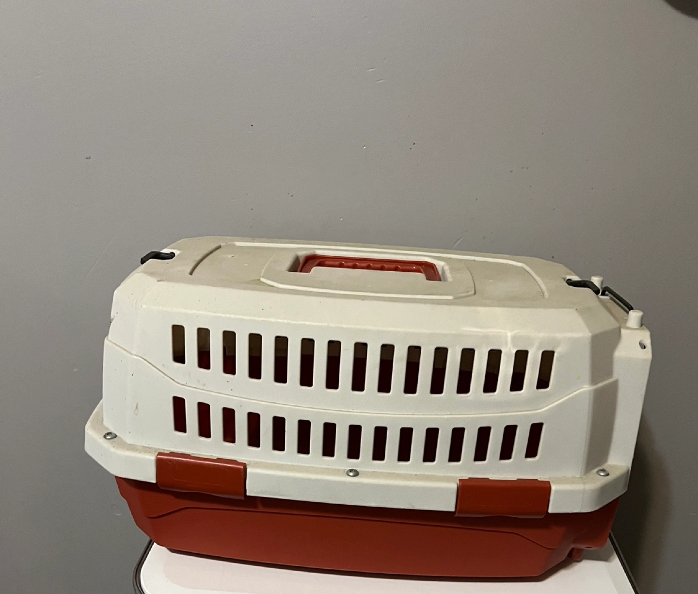 Plastic pet carrier. Great for Small Animal Travel Crate. Sturdy carrying handle and security latches.