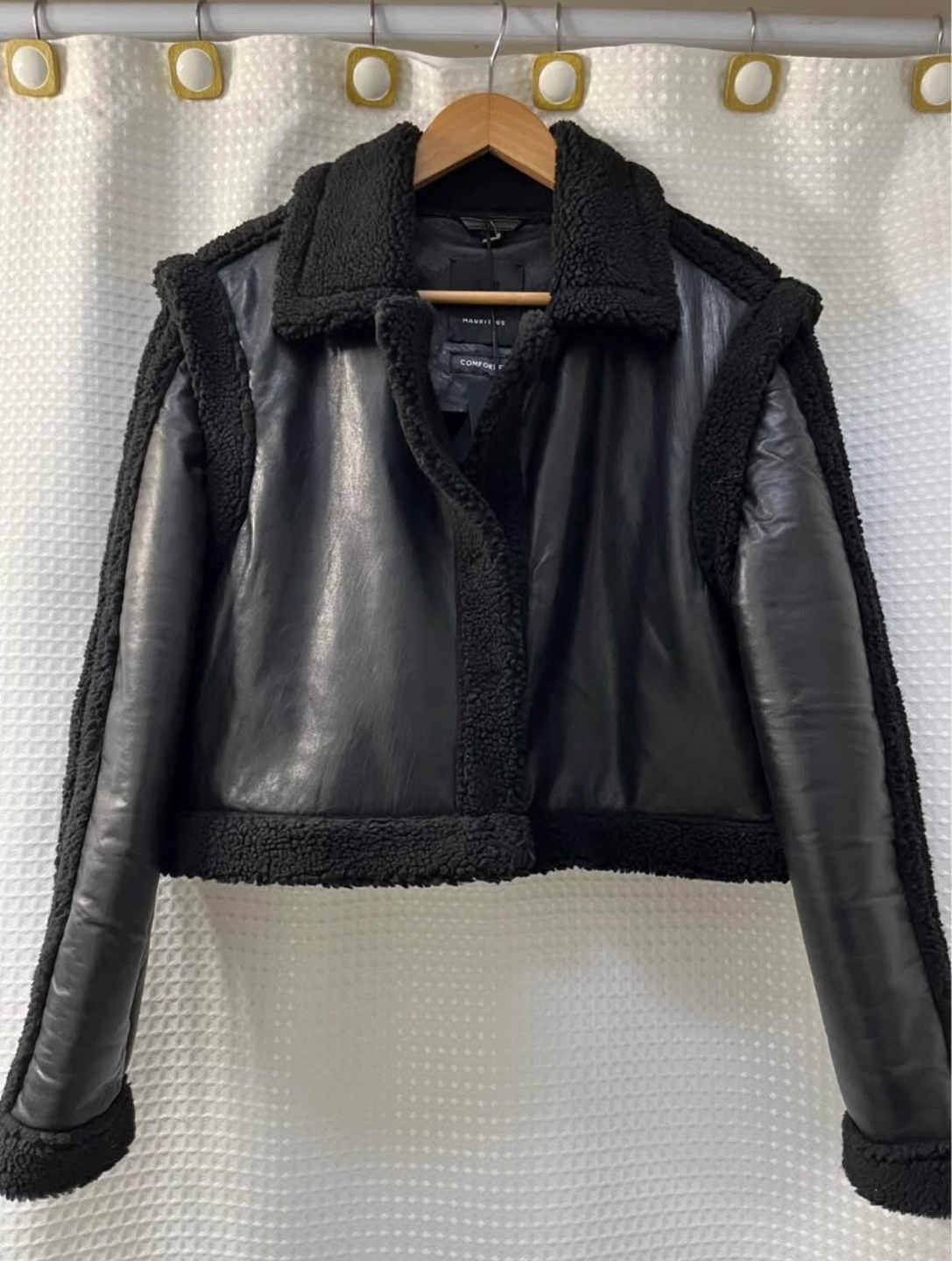Mauritius 100% lamb leather coat. Ladies size Large. Can be with four ways. Brand new with tags. Features sherpa lining and pockets. Selling on website for $458 before taxes.