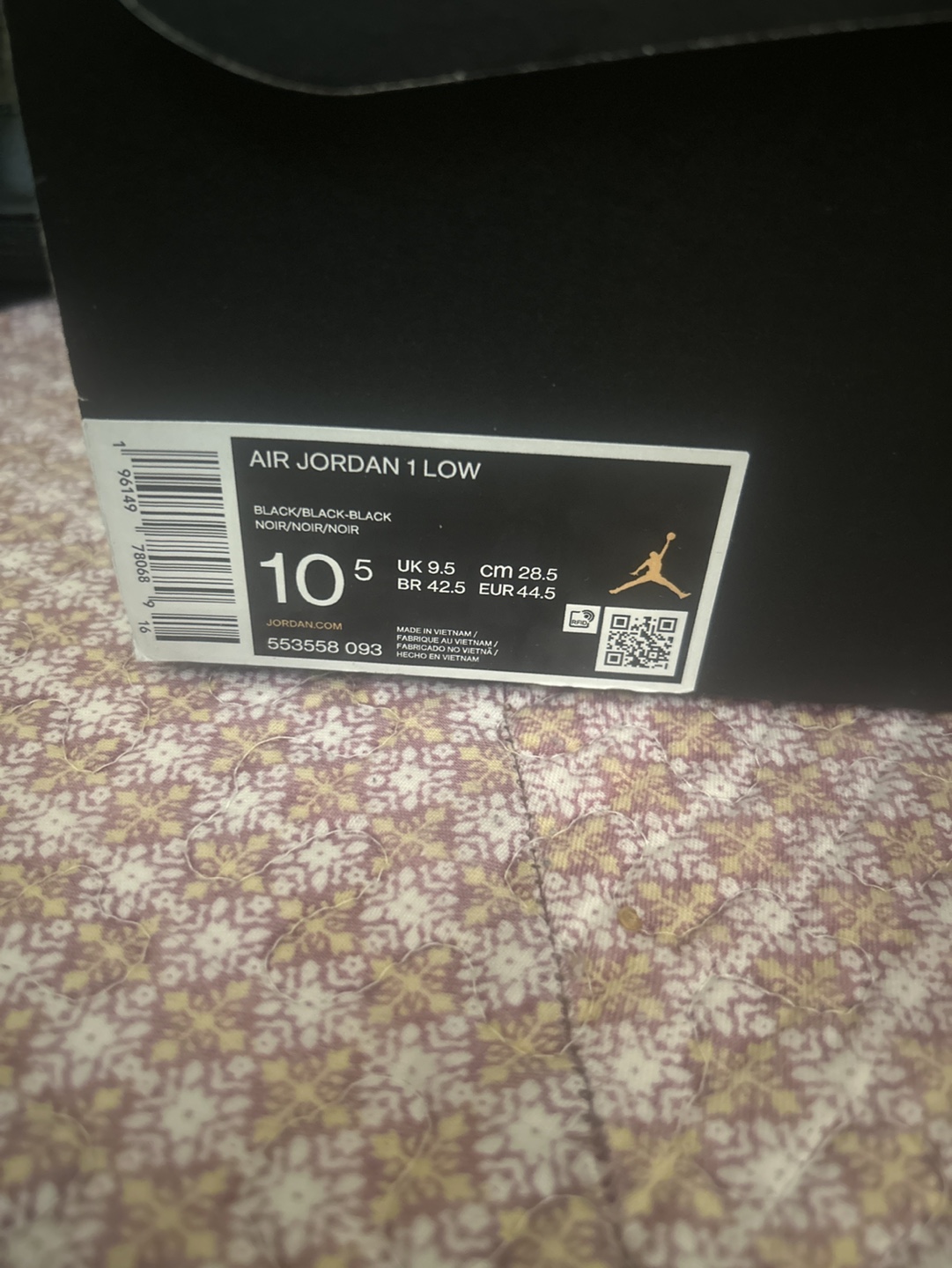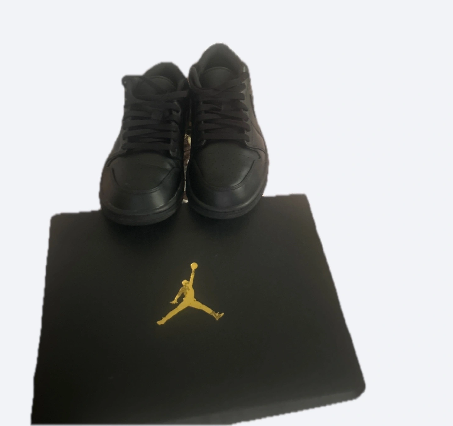 Men's Air Jordan 1 Low sneakers. Black leather. Size 10 UK. In original box.