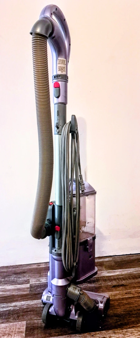 Used Shark Navigator NV352 upright vacuum. Lavender colour. Includes extension, crevice tool, upholstery tool, and wide-mouth dusting brush. Easy empty bagless dust collector.