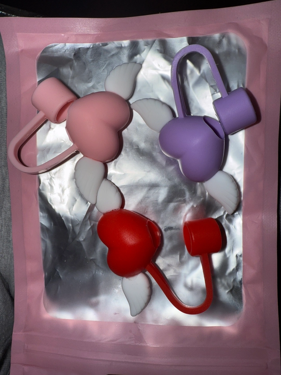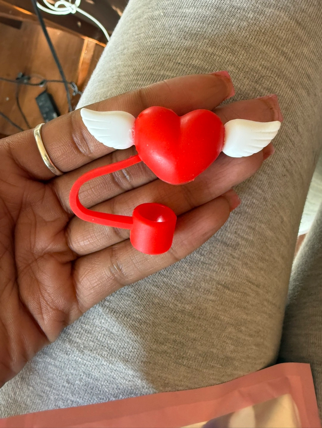 Straw Cover Cap for Stanley Cup,Splash Proof Straw Topper,Heart-shaped Straw Tips Lids Wings Silicone Straw Topper Protectors Reusable Drinking Straw Cover Cap for 10mm Straws