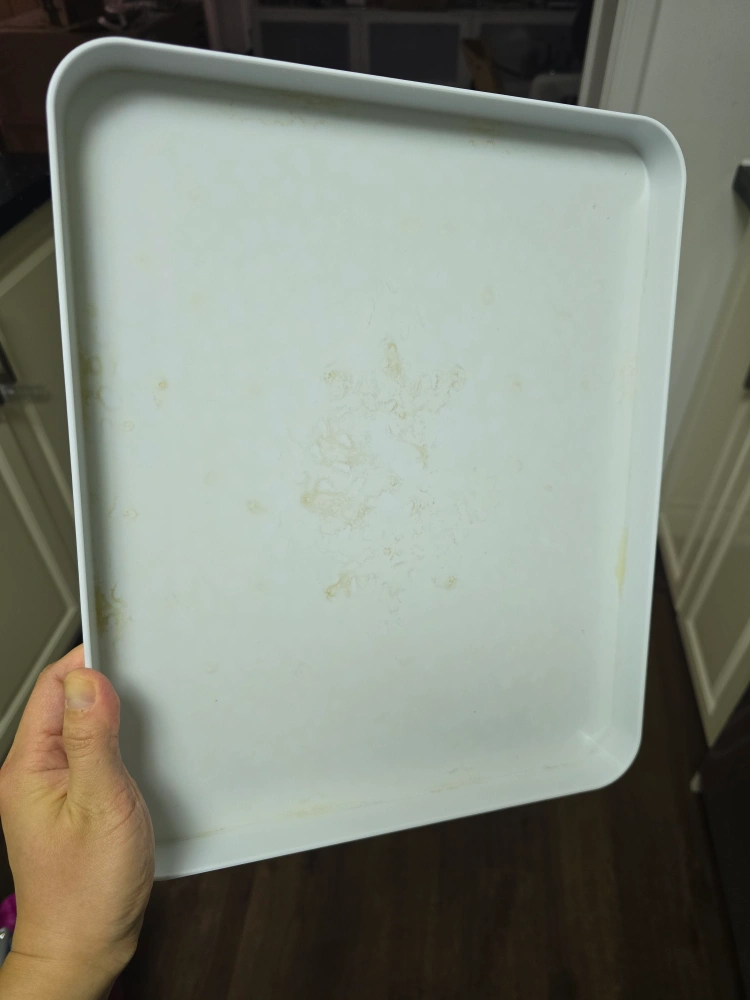 White tray has a bit a stain but has been thoroughly cleaned