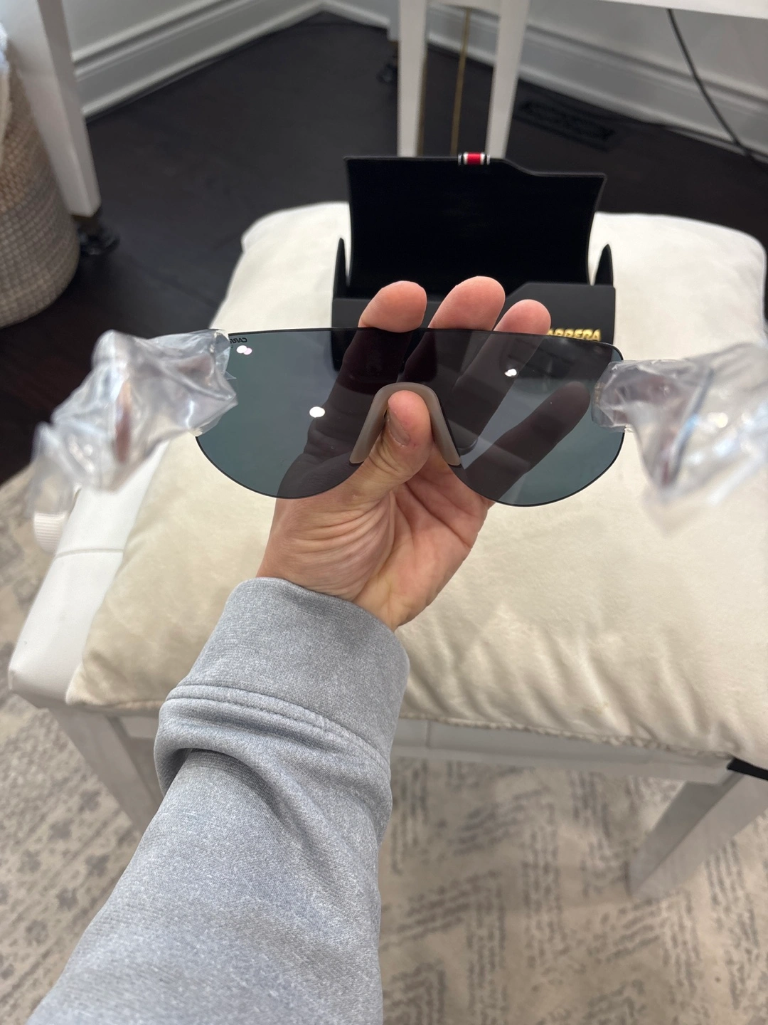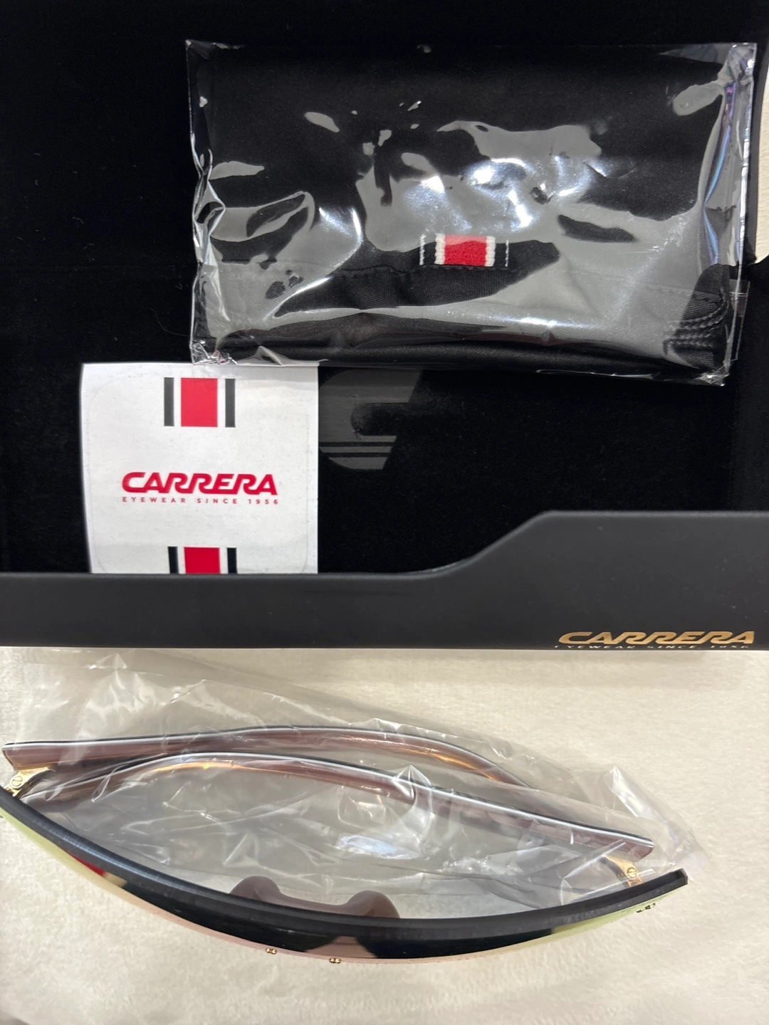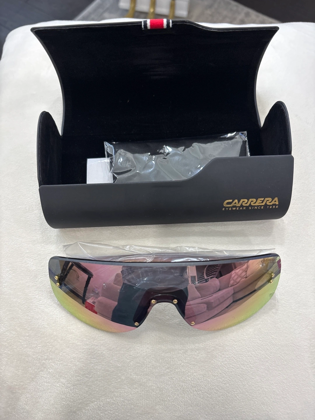 Brand new Carrera sunglasses. Never worn. Includes case and cleaning cloth. Stylish design. Unique shape.