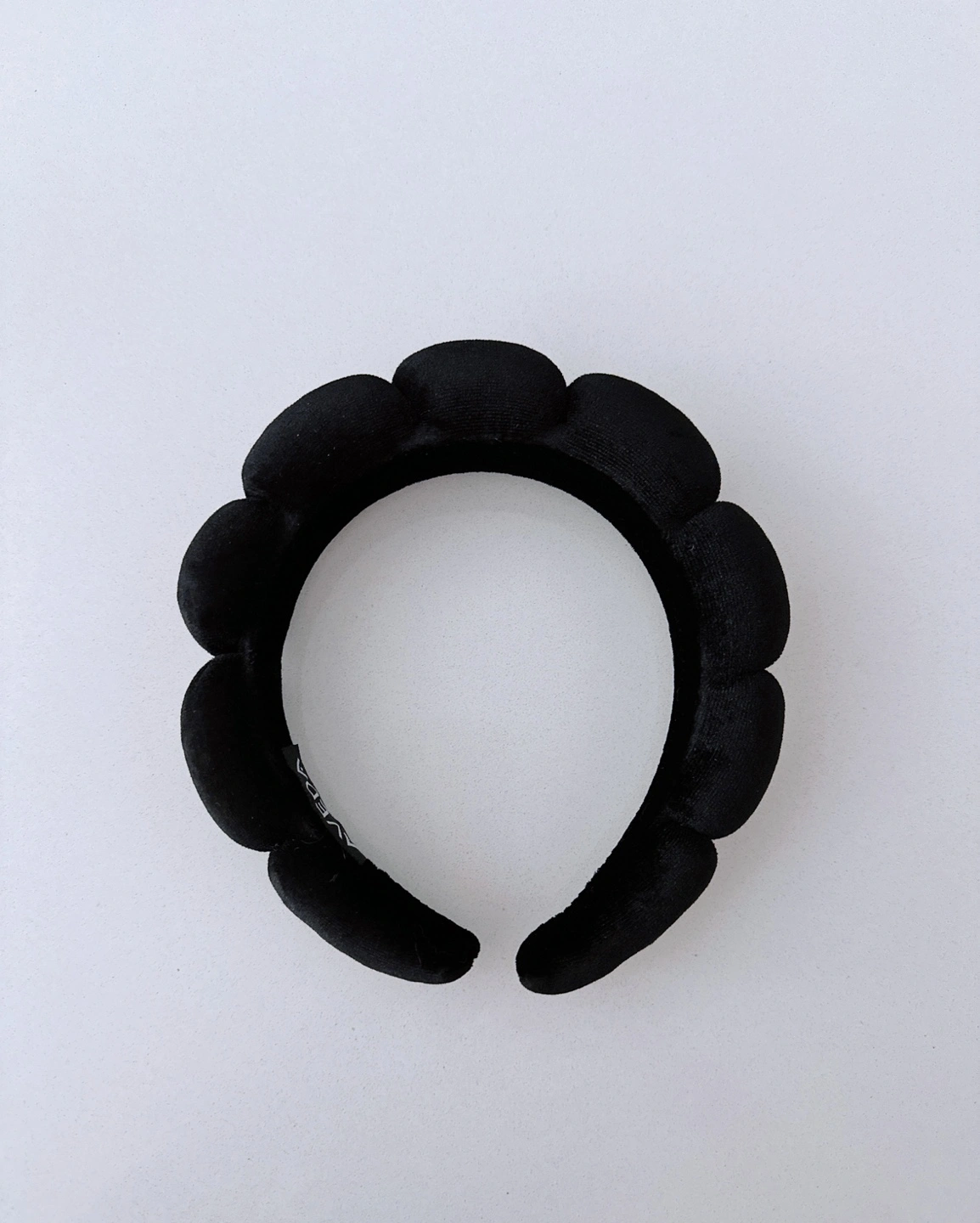 This adorable headband keeps your hair away from your face, making it easy to apply skincare or makeup. Made from ultra-soft, absorbent black terry cloth, its puffy, cloud-like design adds a touch of comfort and style to your routine.
