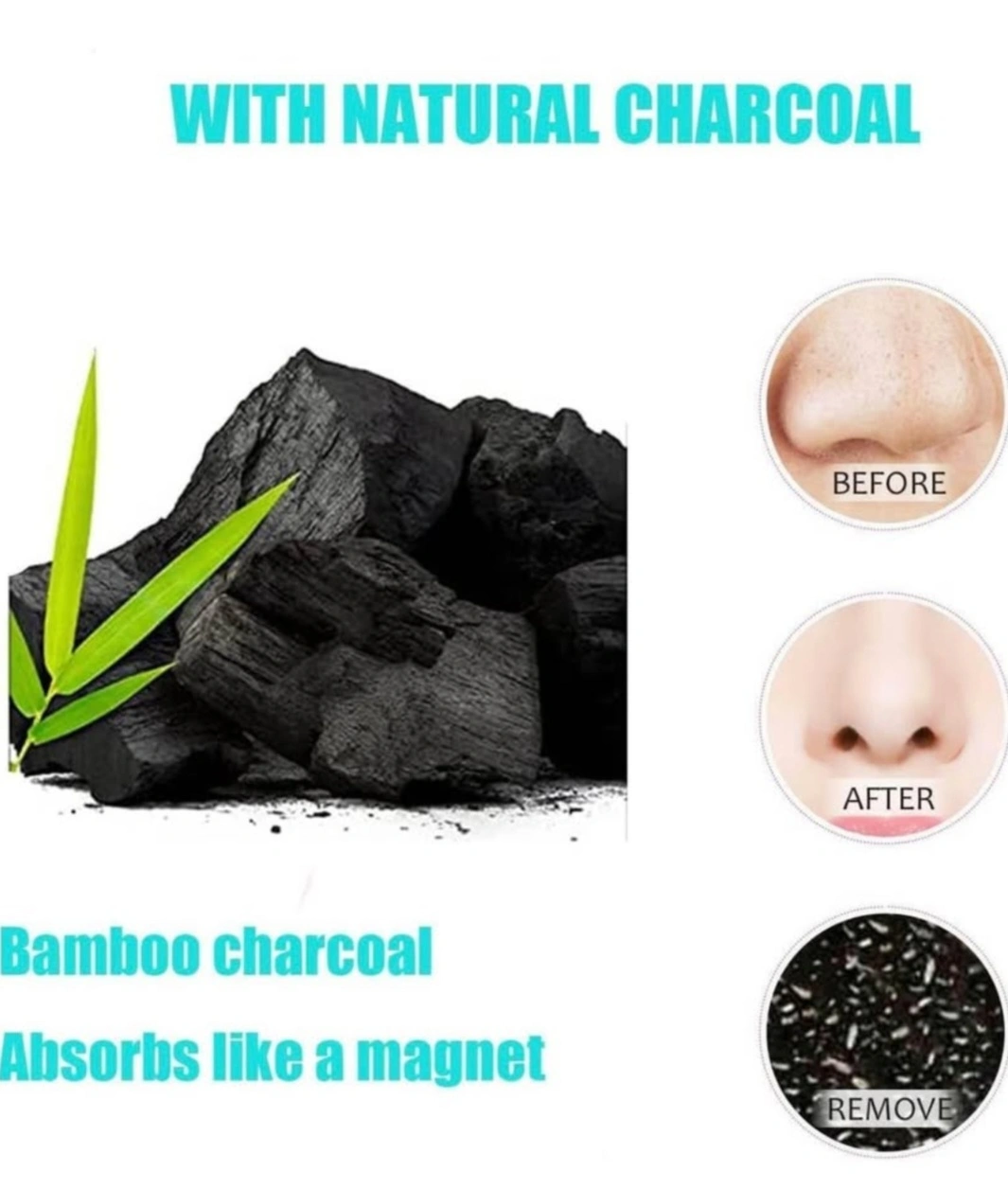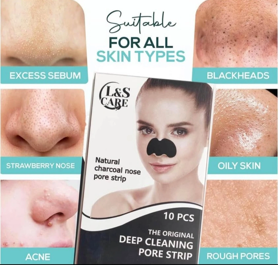 packs for 10 charcoal nose pore strips. Deep cleaning. Reduce oily skin and blackheads. Suitable for all skin types.