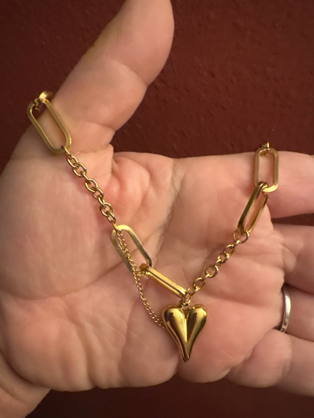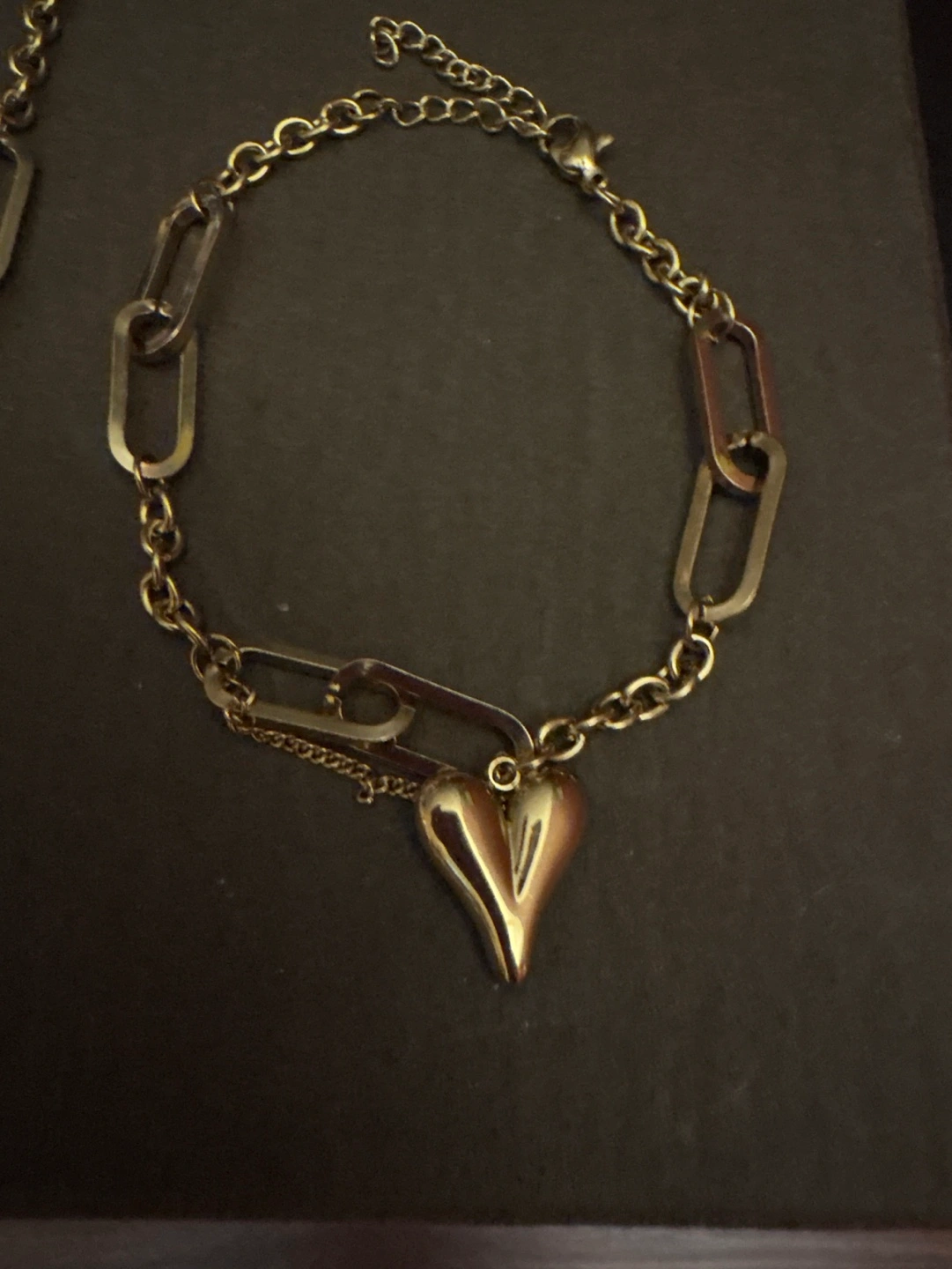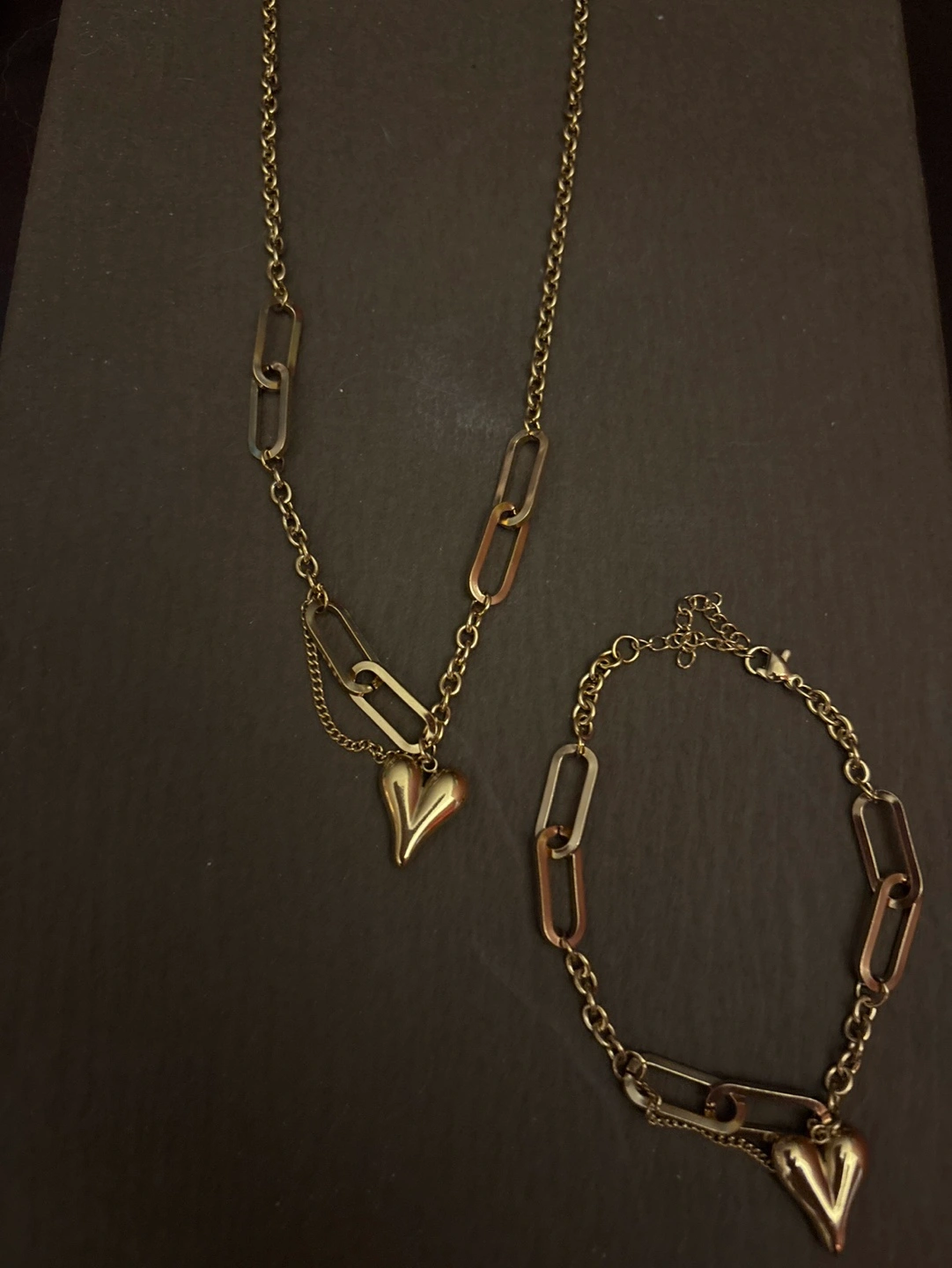 Matching necklace and bracelet set. 18K Gold Stainless Steel Features heart charm. Chain-link style. NEW with Box and cleaning cloth • Lead & Nickel Free • Tarnish-Free • Water Resistant