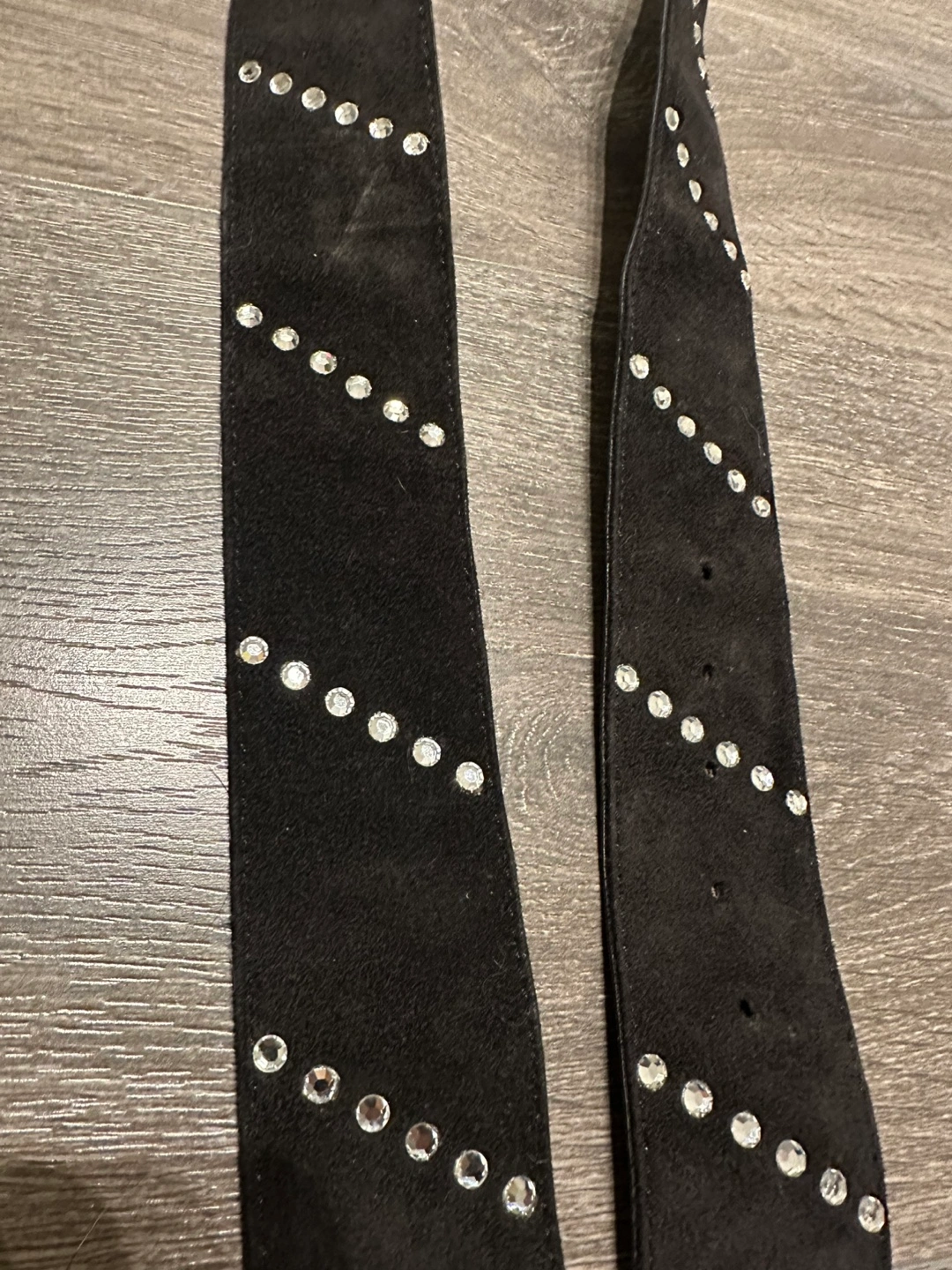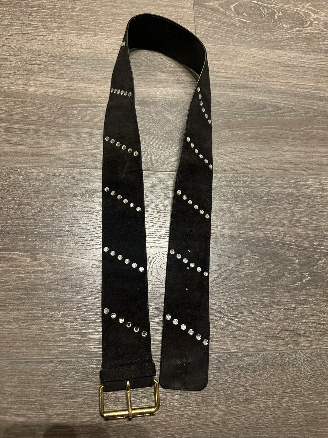 SONIA RYKIEL suede leather black belt with rhinestones France