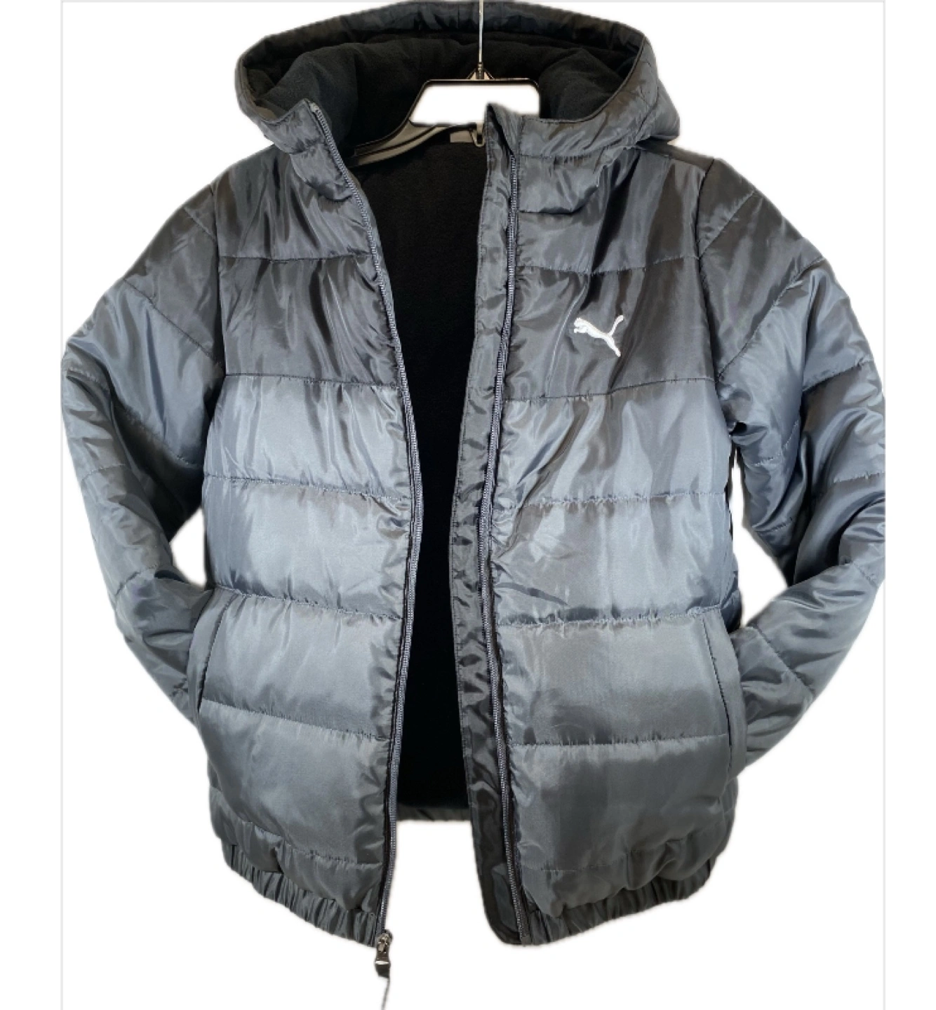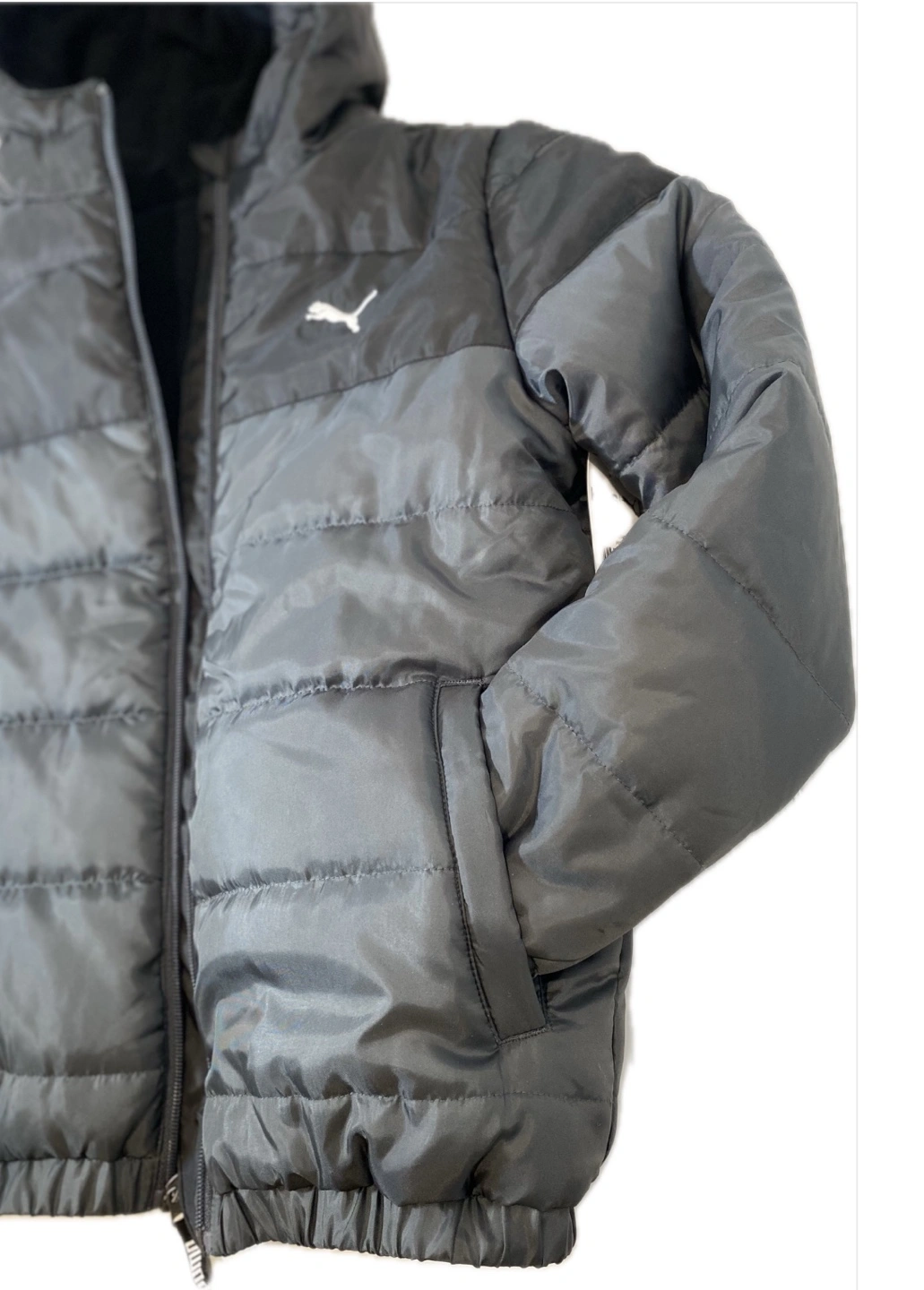 Puffer winter Jacket. Zipper closure. Attached hood. Two front pockets. Marca Puma. Great for cold weather. New with tags. Shipping and local pick up!