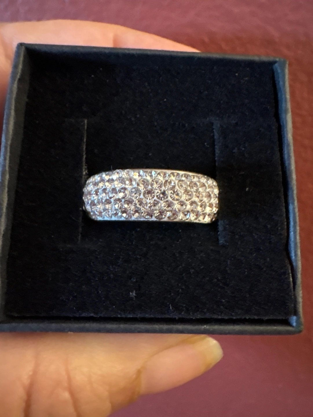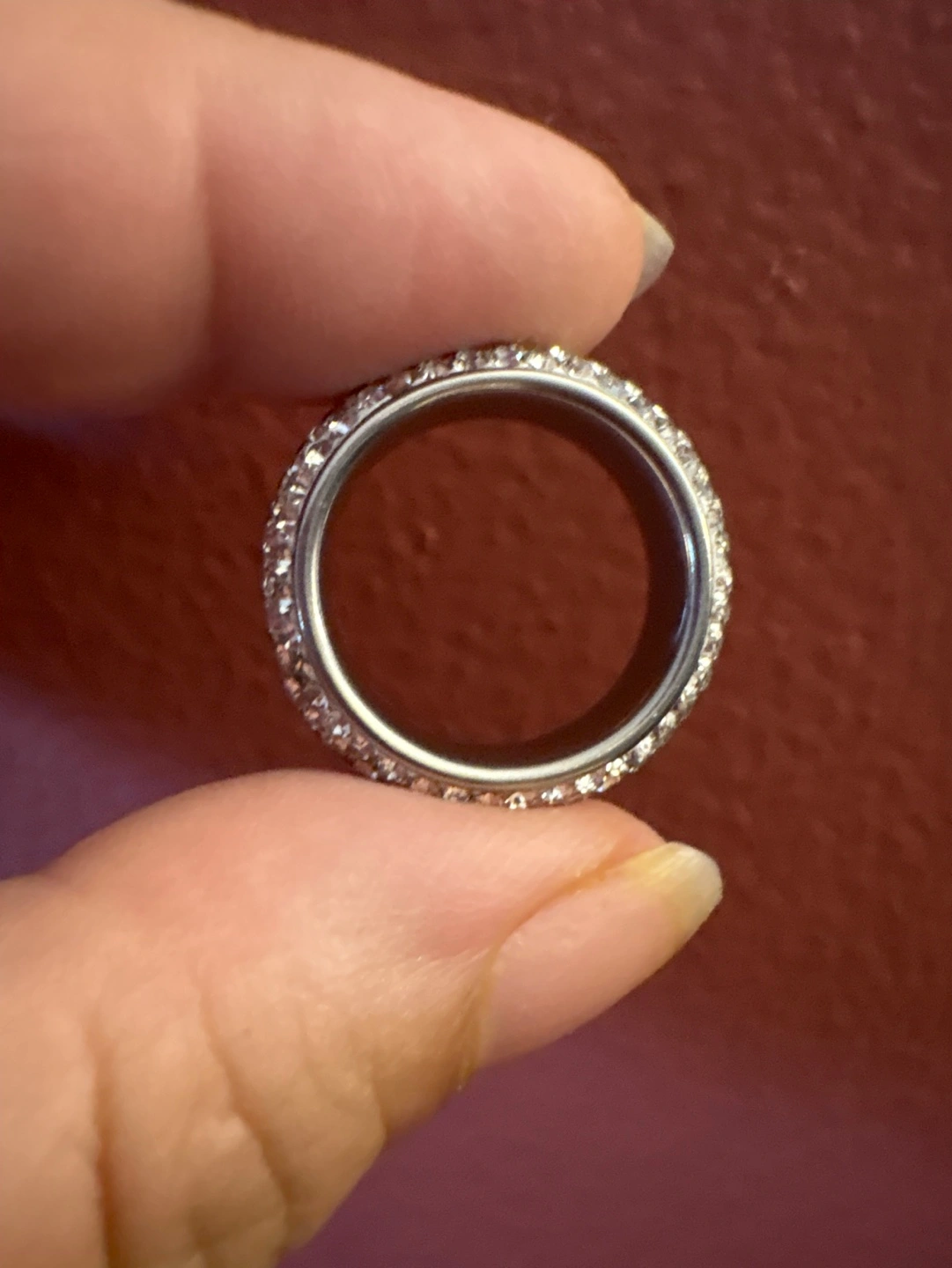 14K Gold Titanium Steel silver band. Rows of clear CZ . Size 7. Beautiful statement ring. New with Box and cleaning cloth