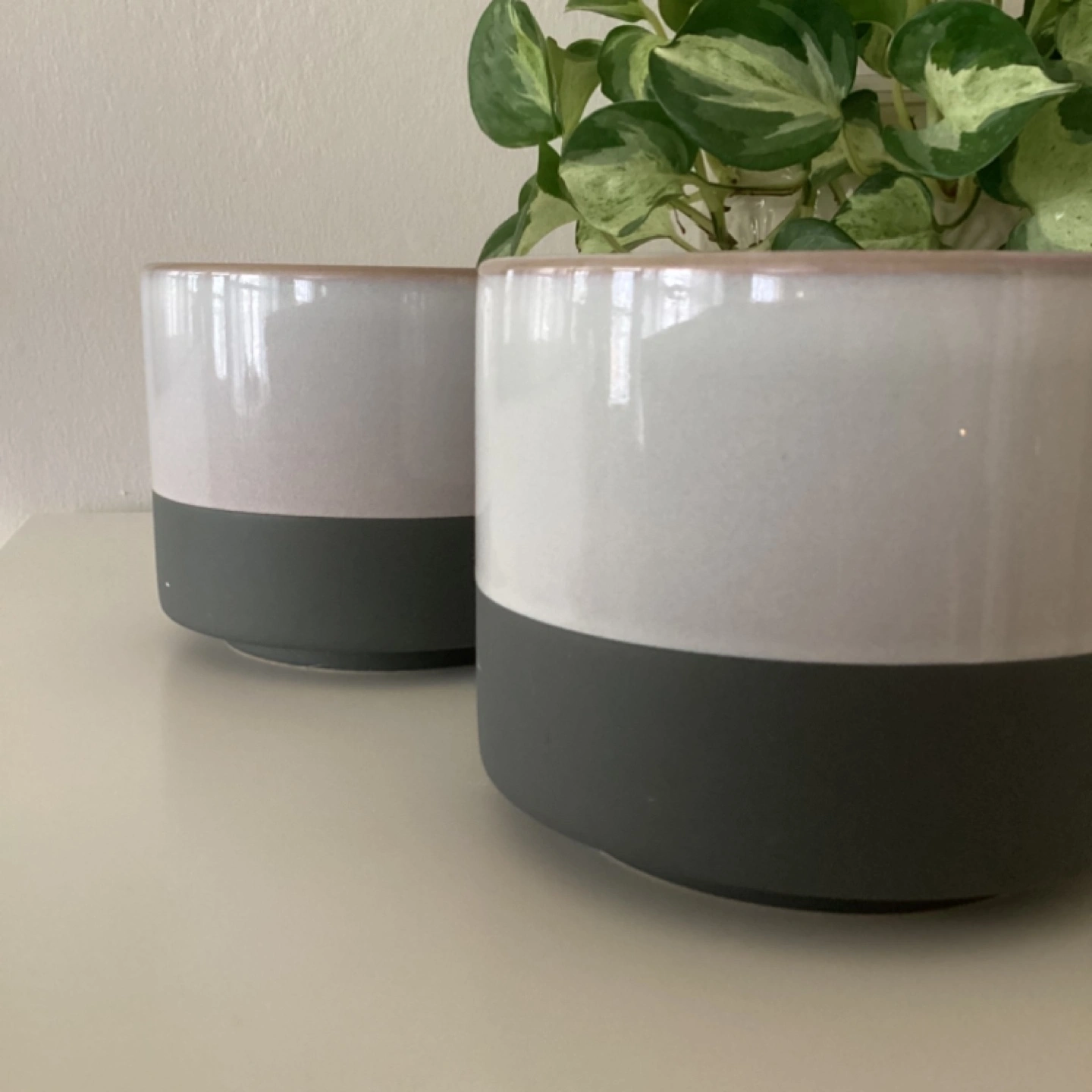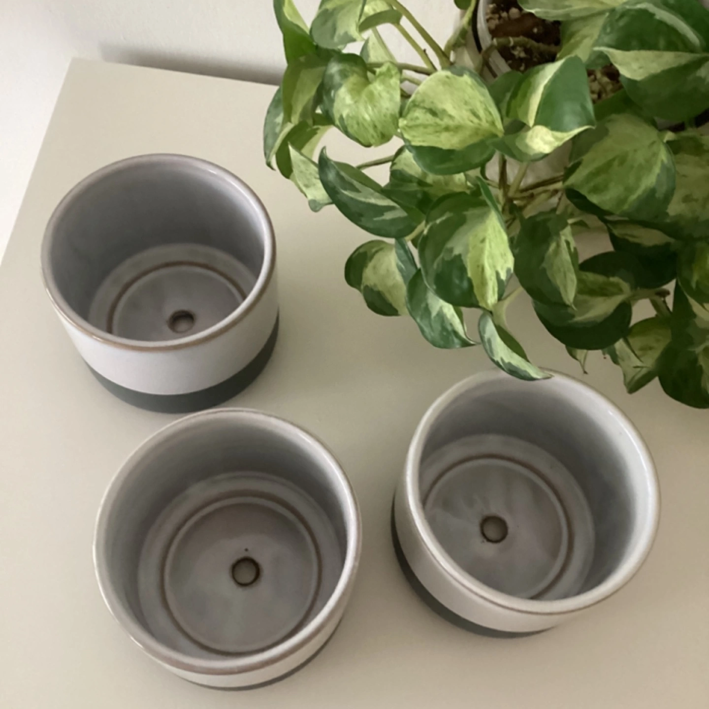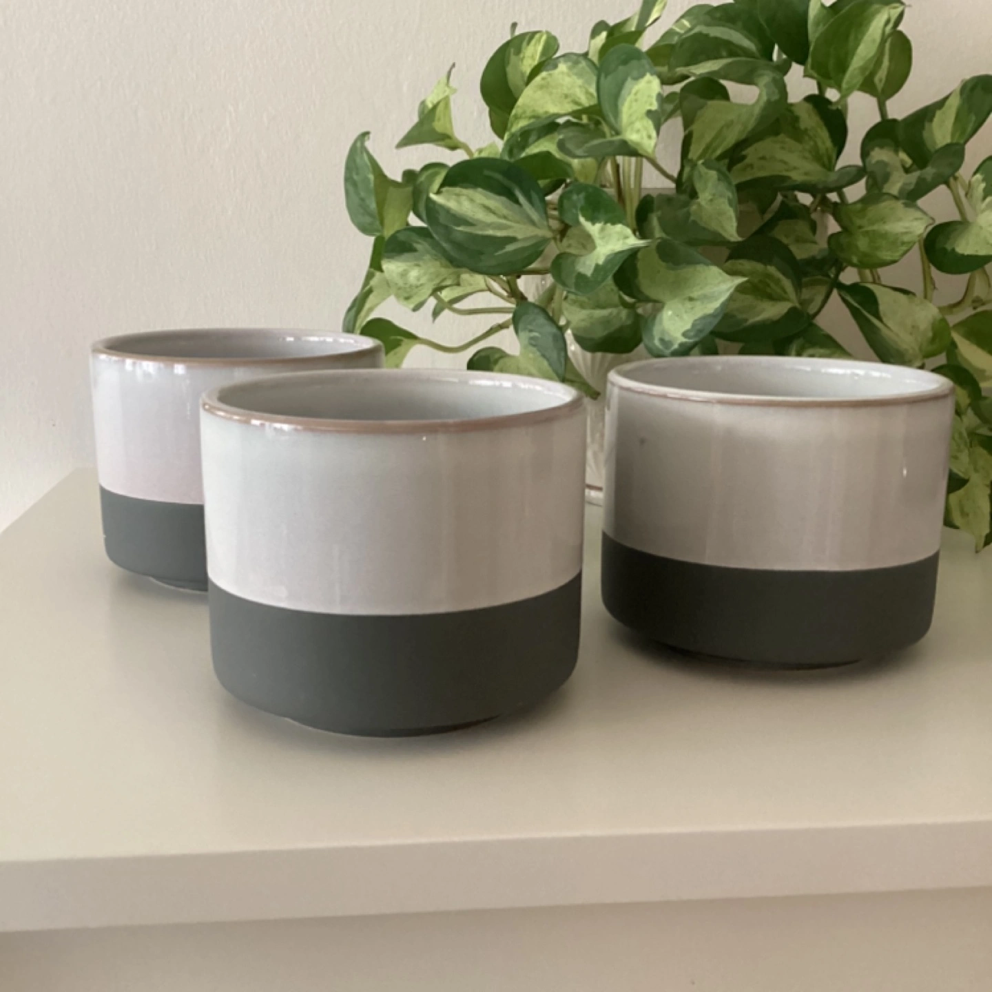 Set of 3 two tone grey ceramic plant pots with drainage holes. 5β diameter. No cracks/chips/stains.