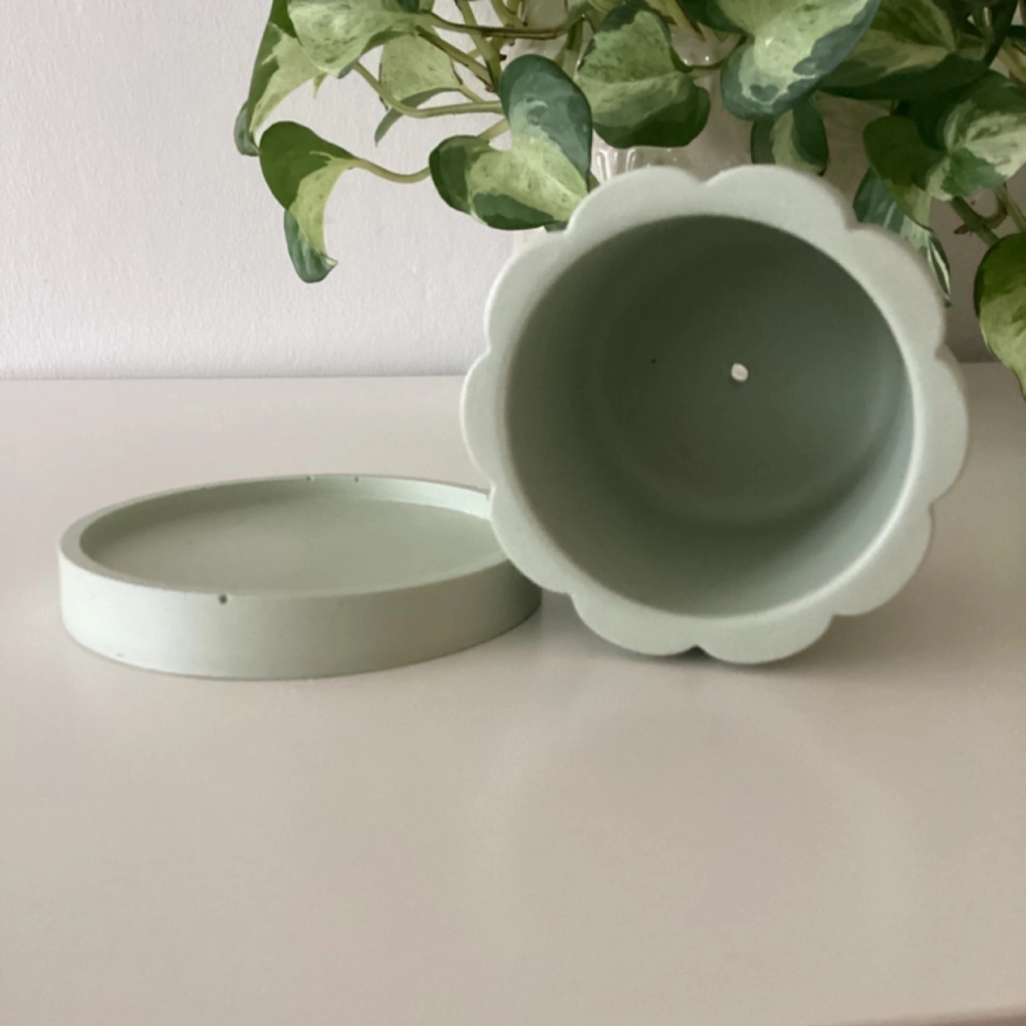 Handmade Sage Green Jesmonite Planter with Saucer π