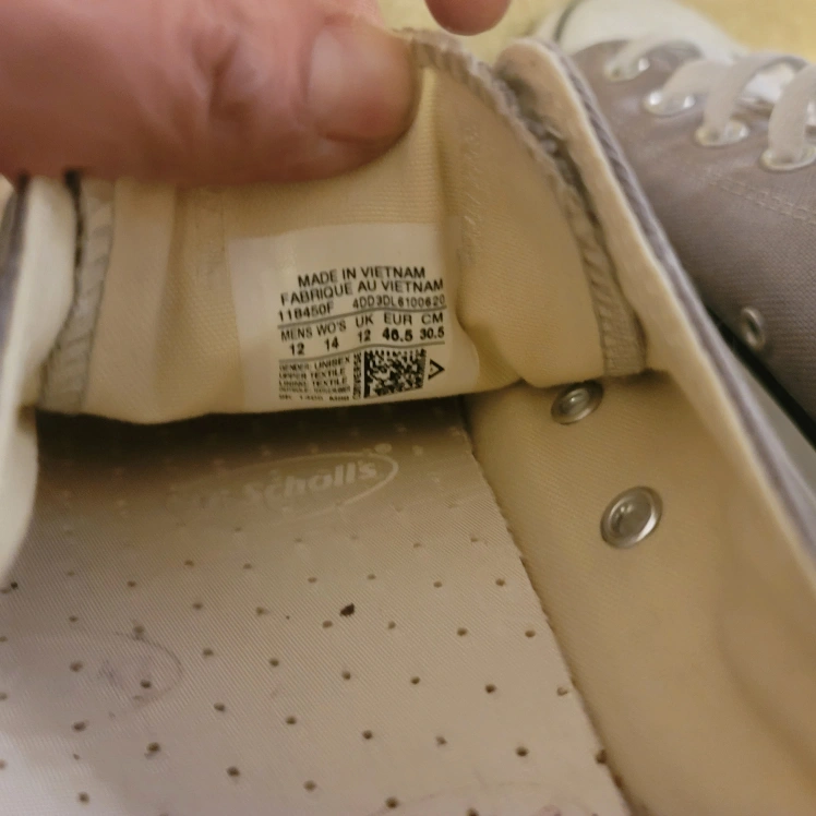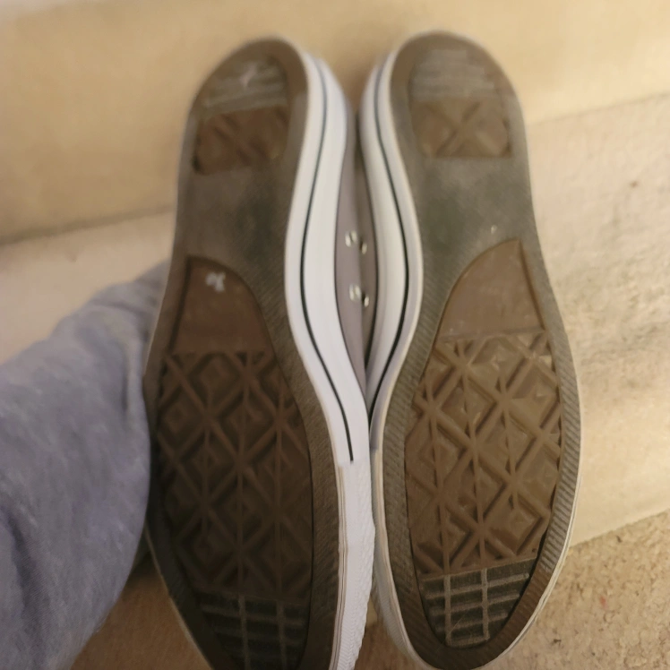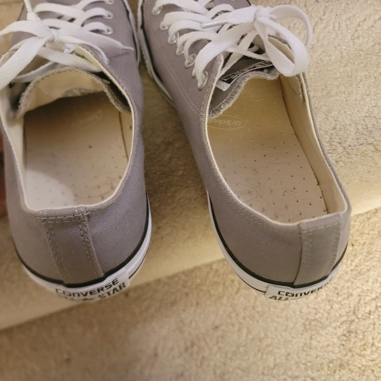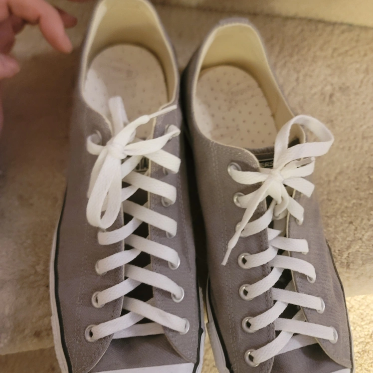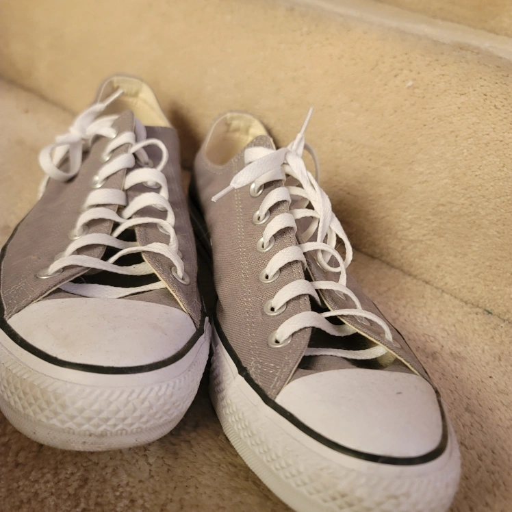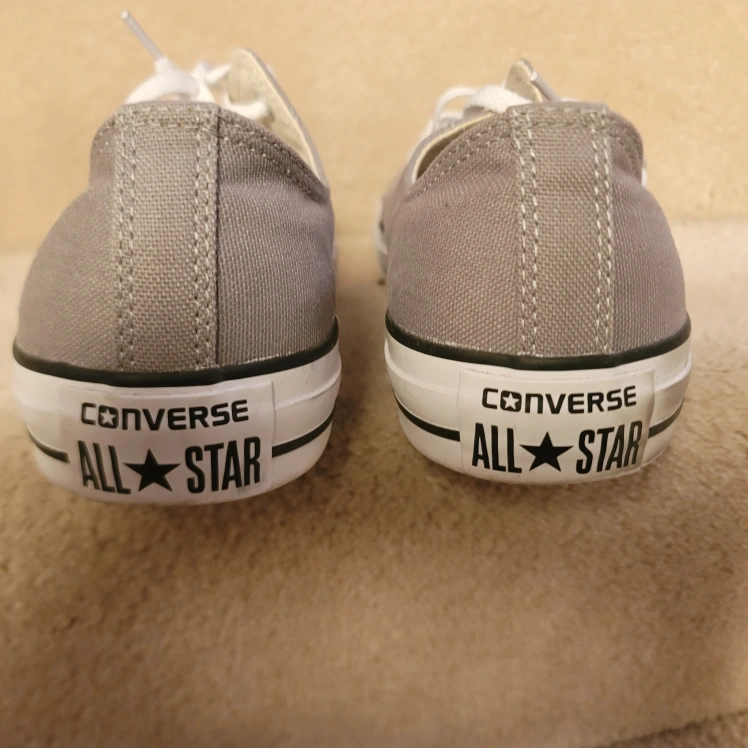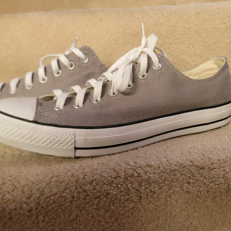 Pair of grey Converse All Star low top sneakers. Classic design, canvas material. White laces. only worn once. no scuffs, marks stains or damages of anykind