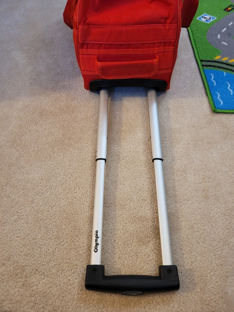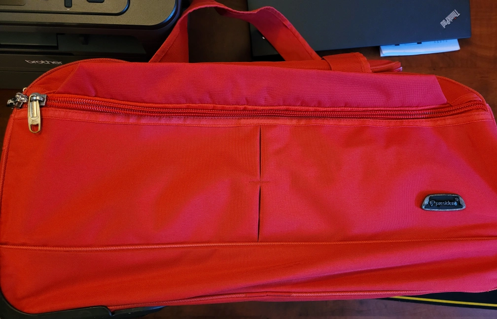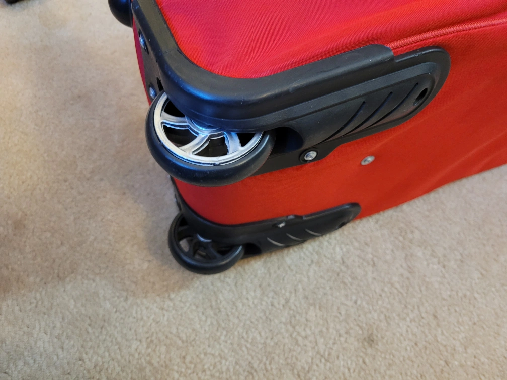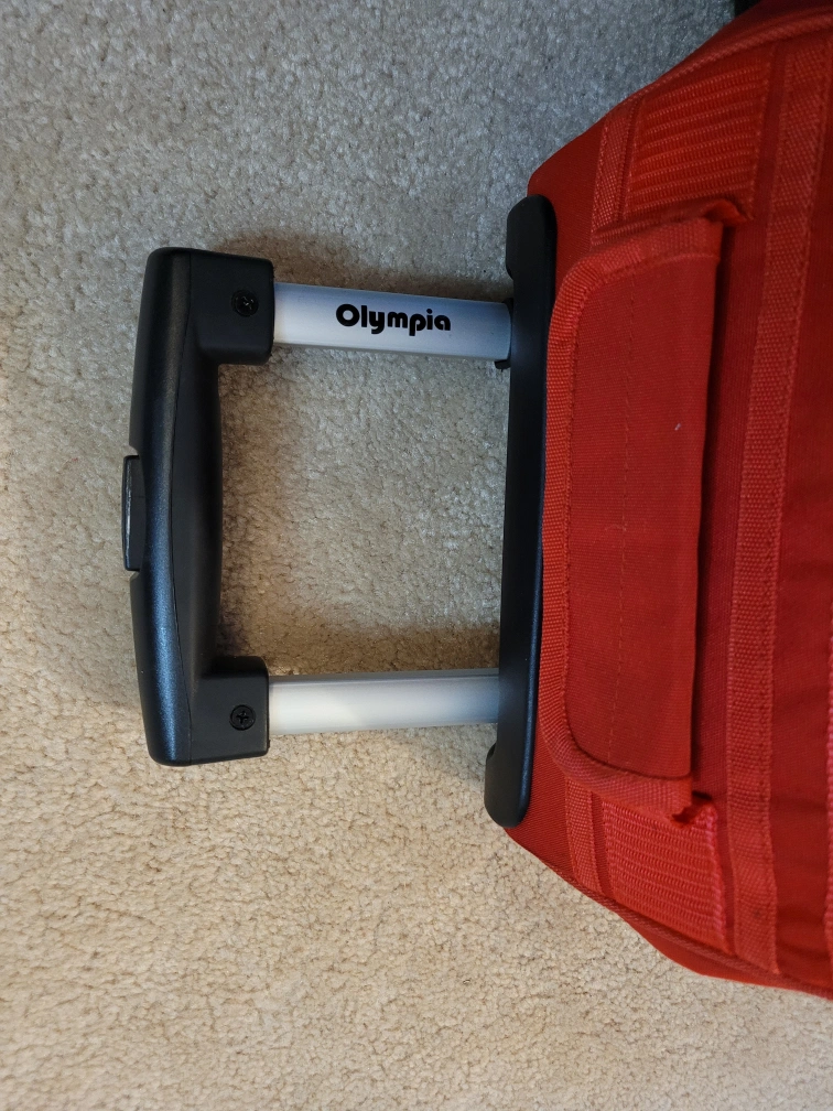 22 inch rolling suitcase in red, made by Olympia