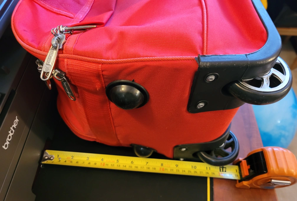 22x9x13 inch, fits most carryon and over head bag requirements for air travel, flights