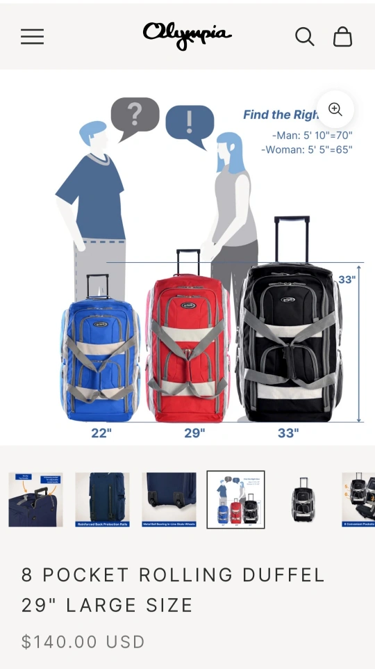Olympia 22" Rolling Duffel Bag - Red