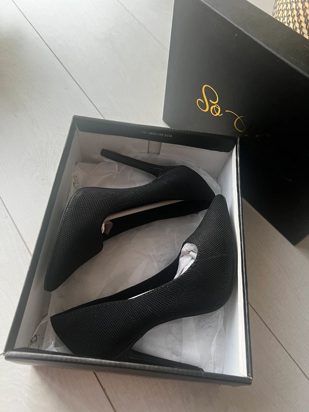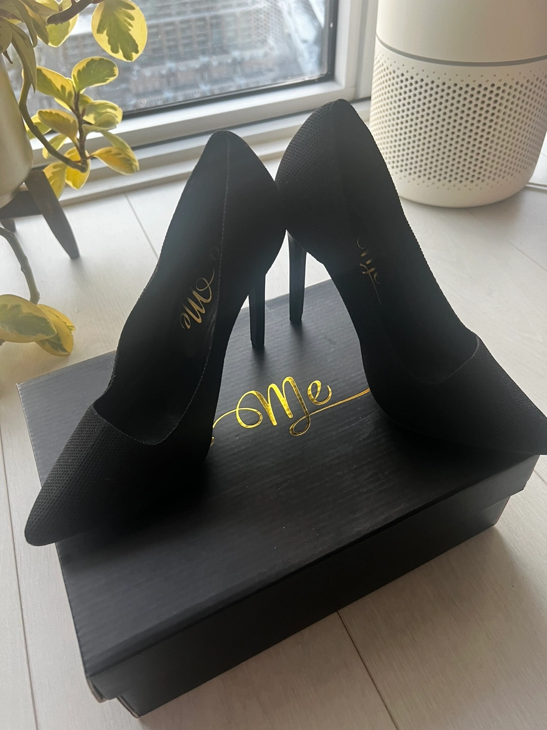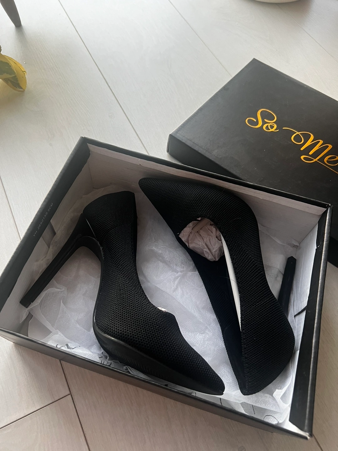 Brand new So Me black knit stilettos. Size 6. Fits 6 1/2. Pointed-toe heels. Come in original box.