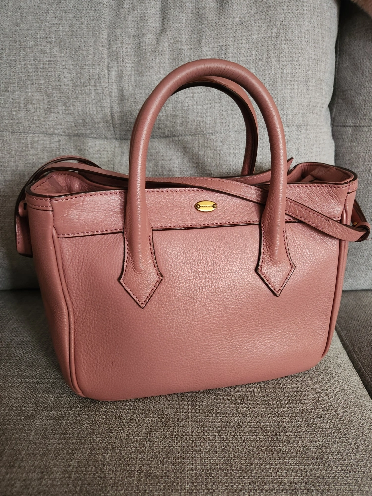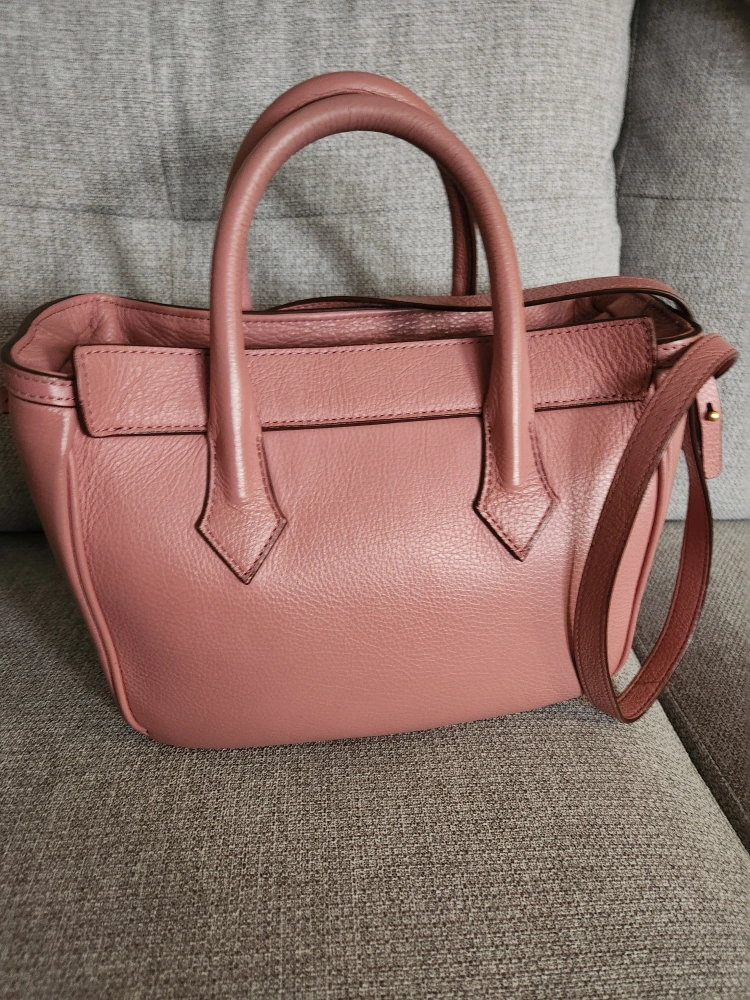 Beautiful dusty rose coloured leather handbag. Top handles and a detachable shoulder strap. Small but functional.