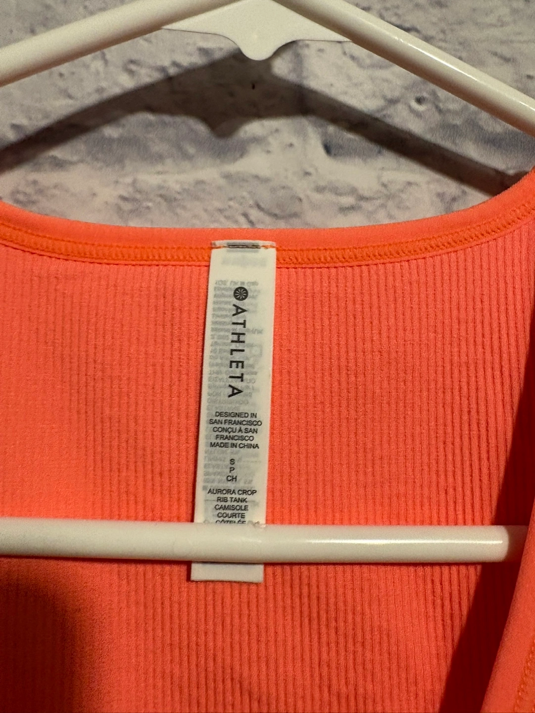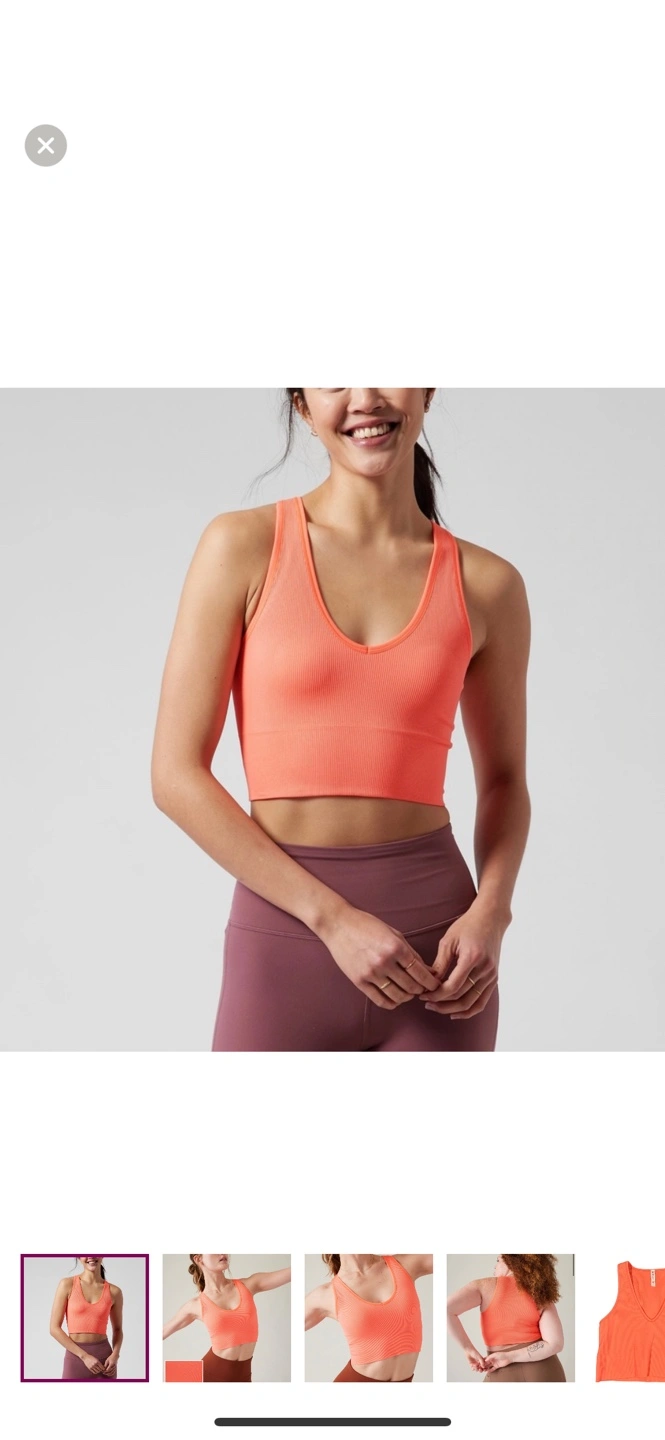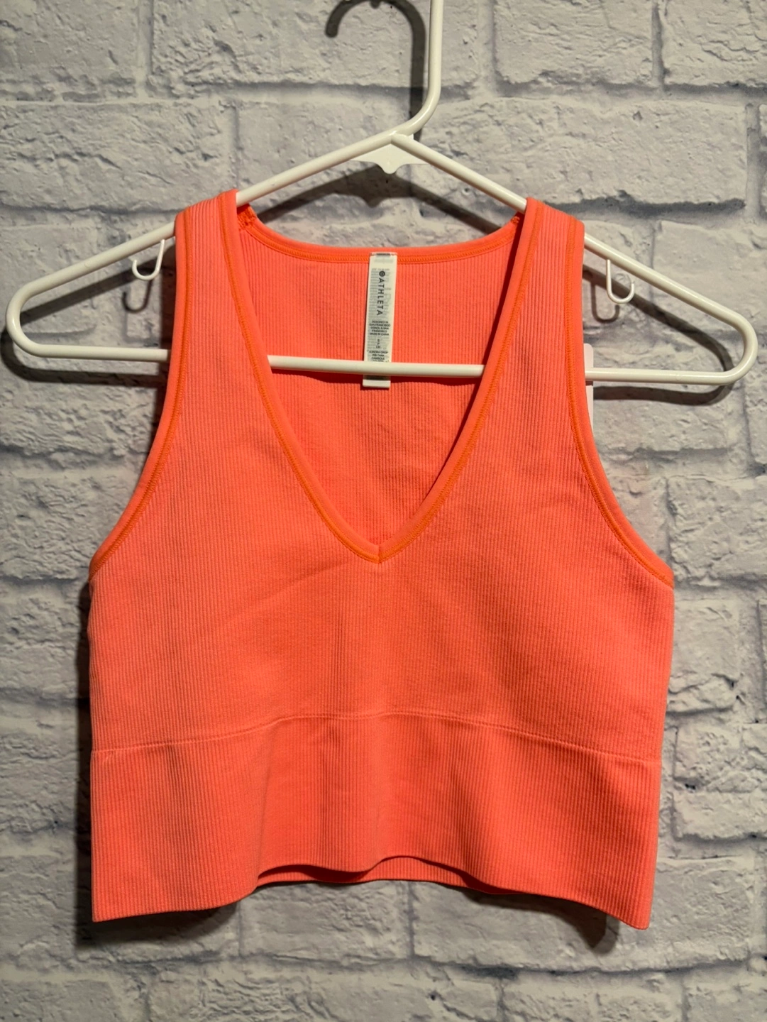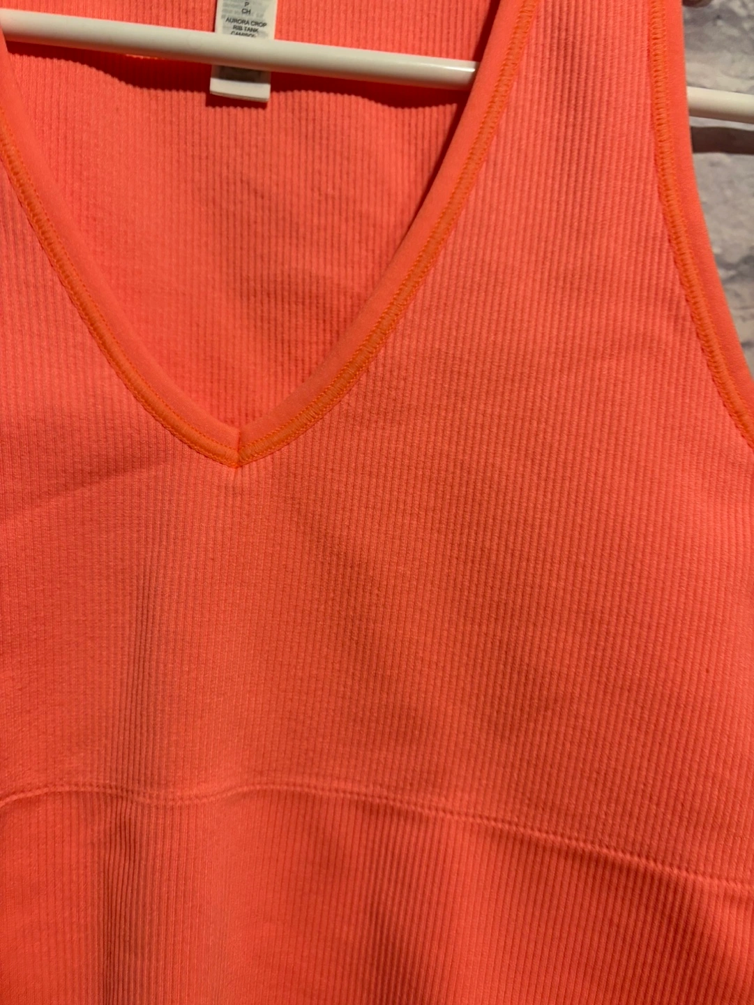Coral ribbed seamless crop tank top. Size small. Great for workouts or casual wear. New with tag, retail is $49. Pick up only.