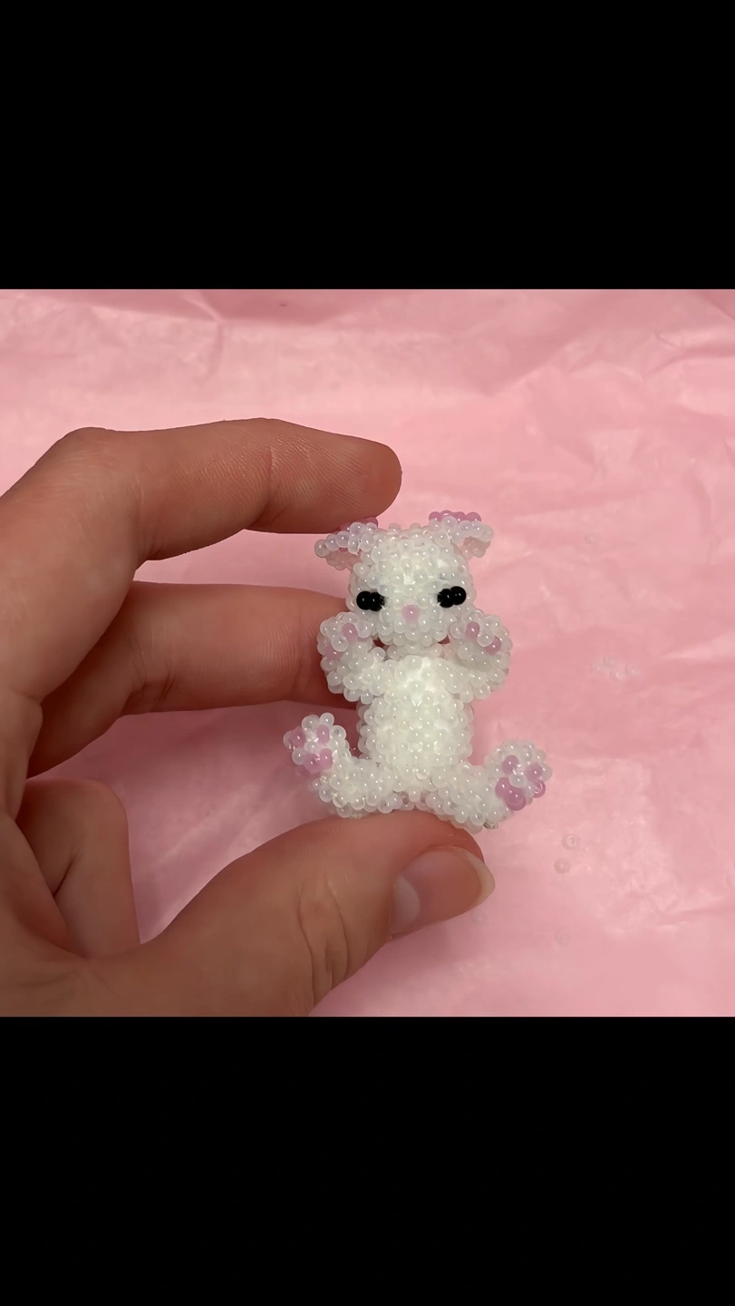 Small handmade bunny charm. White with pink accents. Perfect for jewellery or keychains. Beaded construction.