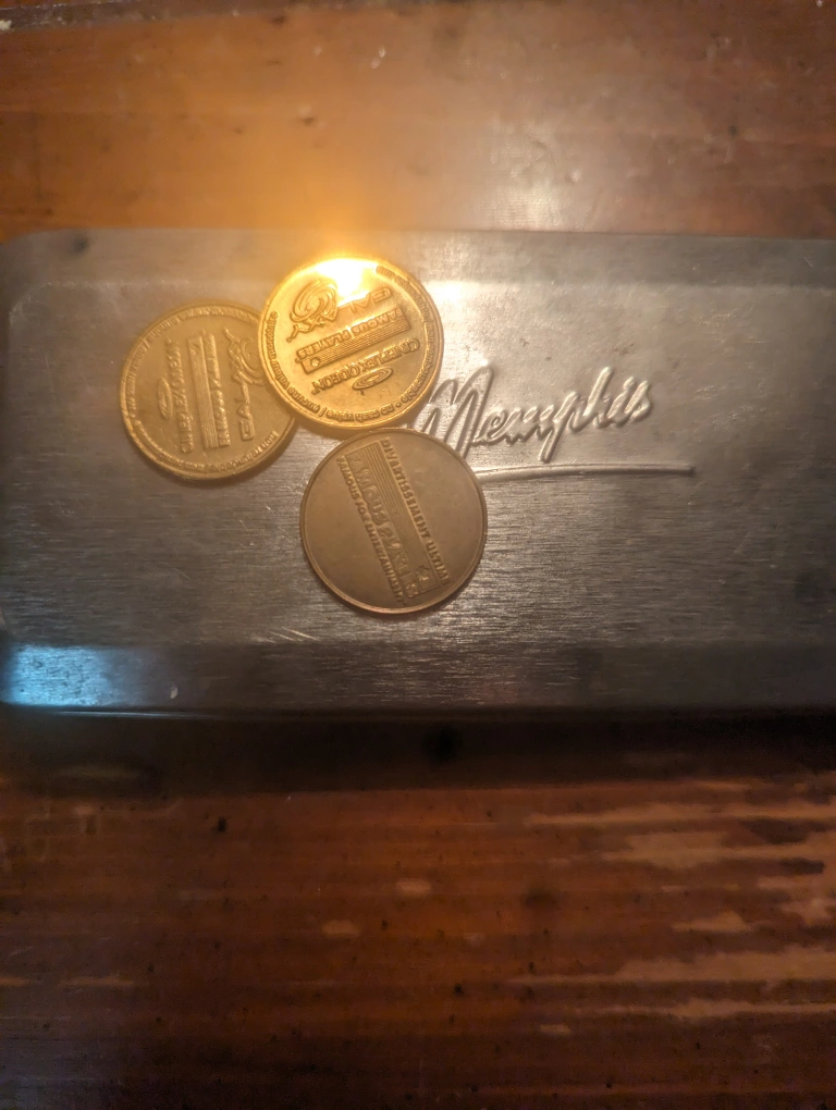 27 pieces Cineplex Xscape Arcade Tokens Metal Tokens in Tin