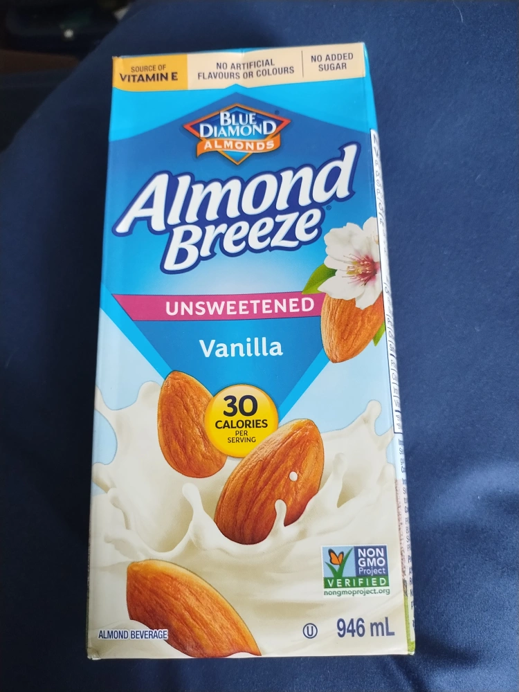 946 ml carton of unsweetened vanilla almond beverage. Source of Vitamin E. No artificial flavours or colours. No added sugar.