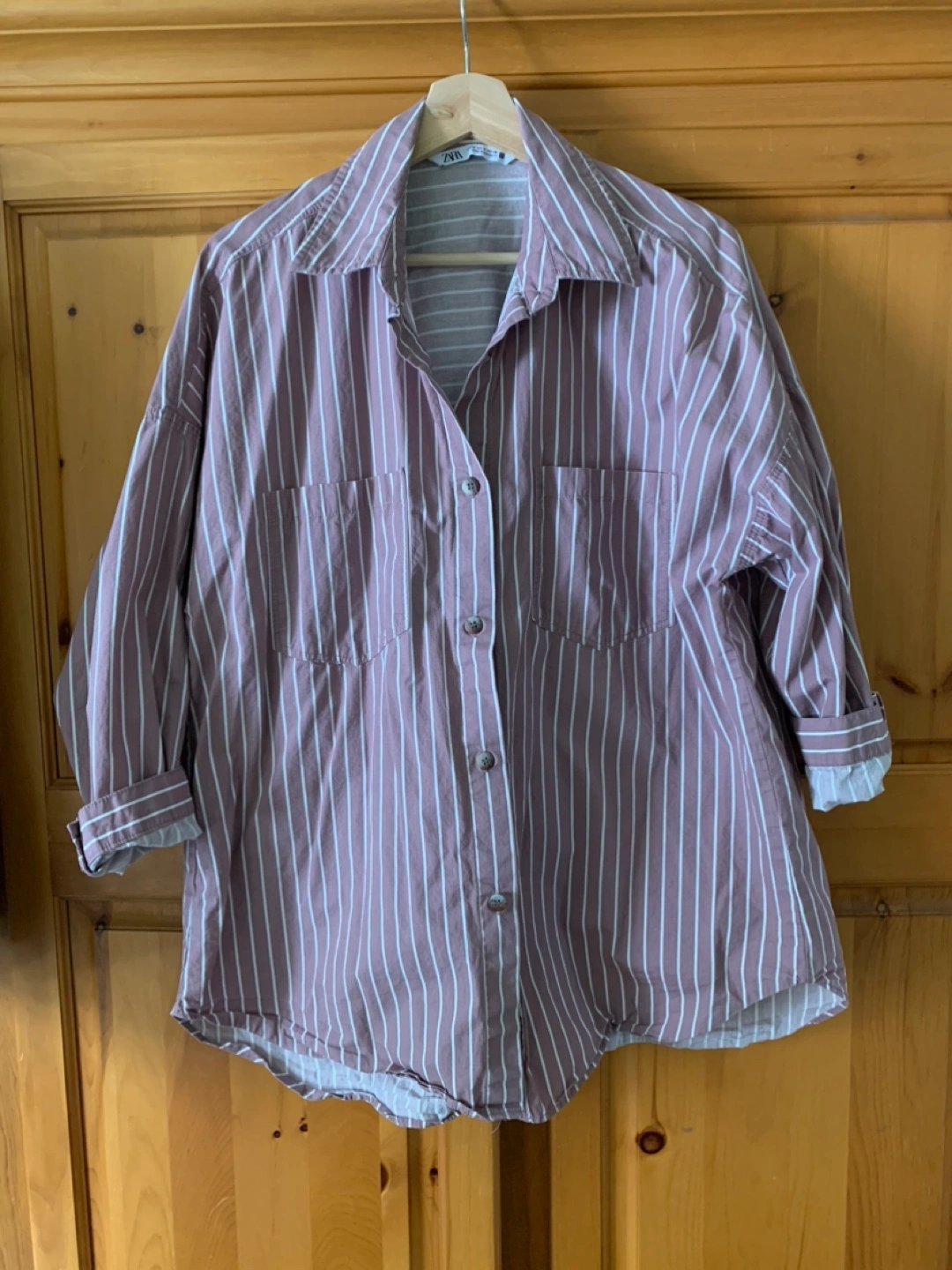 Zara Oversized 100% Cotton Pink Striped Button-down Shirt