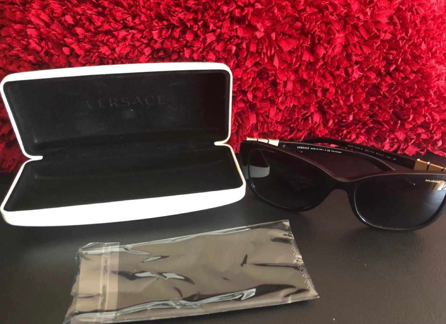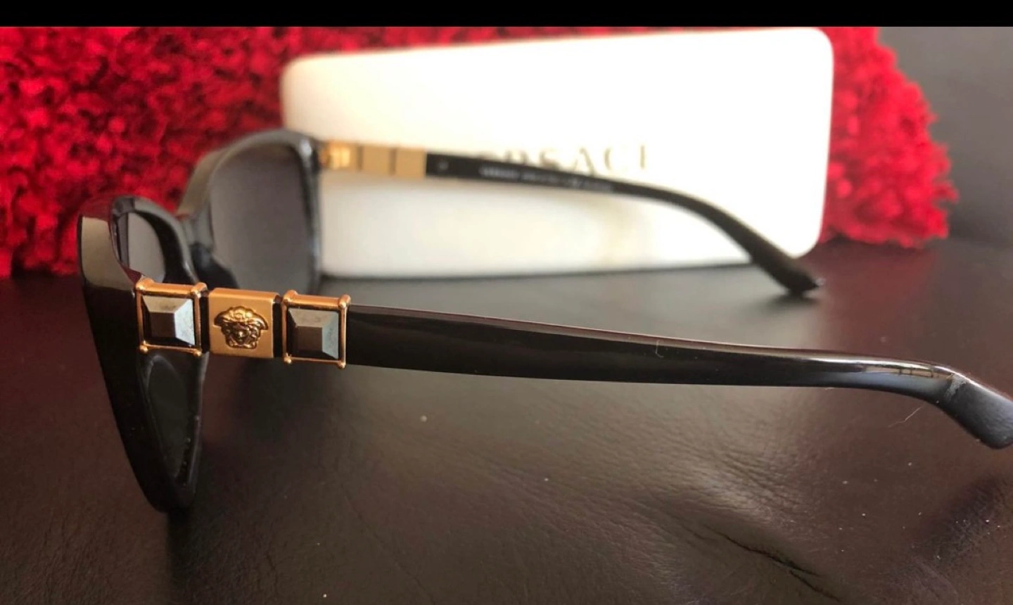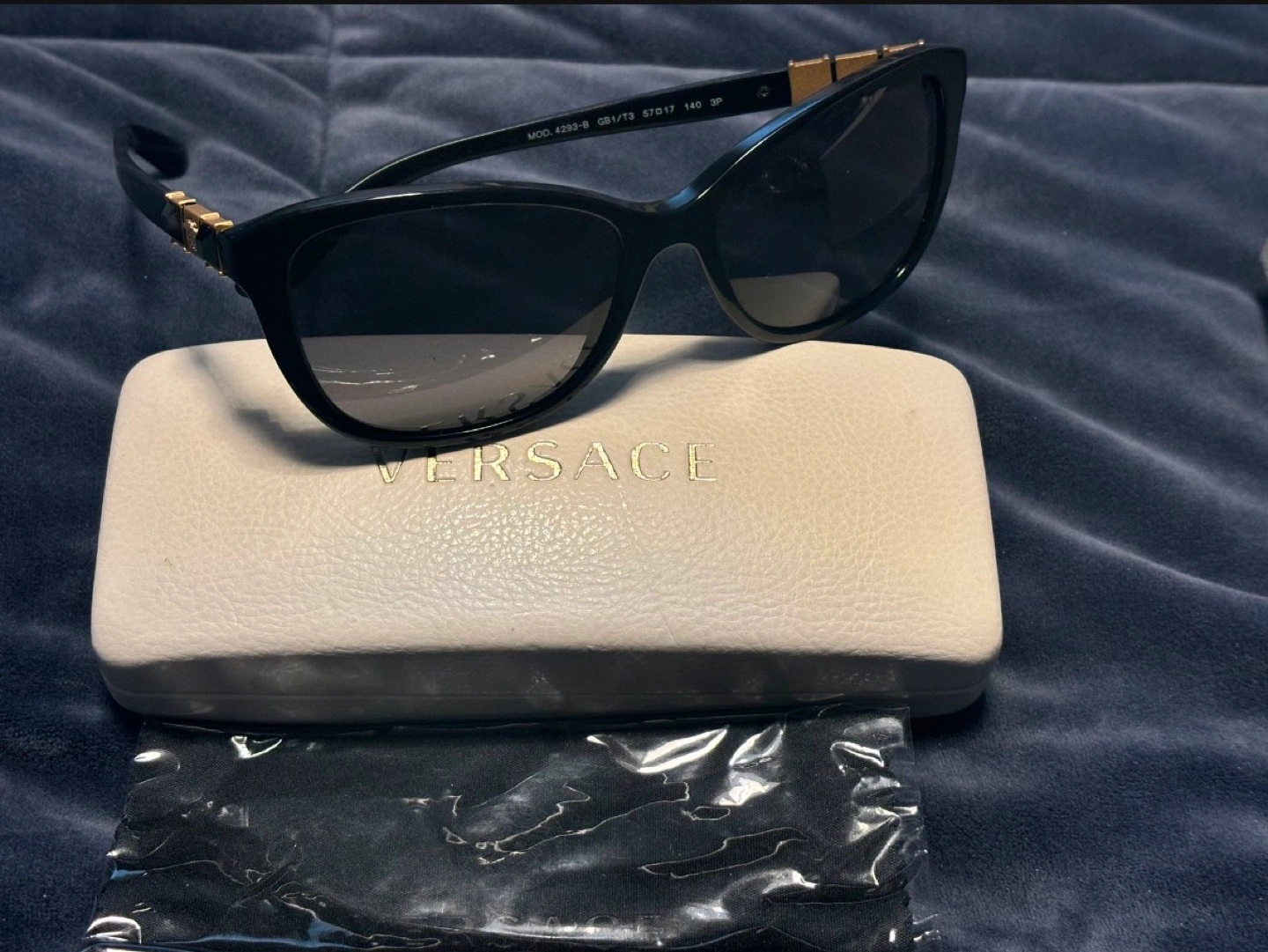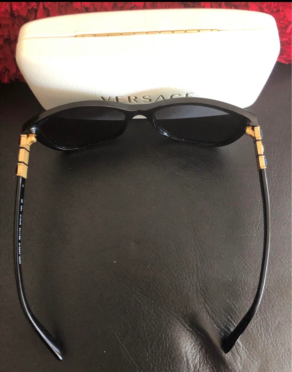 Rare to find Versace Women's black sunglasses. Gold accents. Includes case and cleaning cloth.