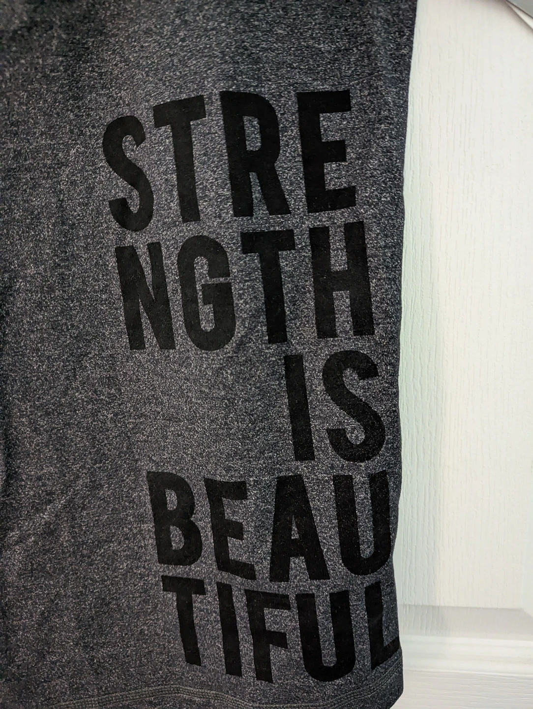 Color: Grey with black writing ' STRENGTH IS BEAUTIFUL'